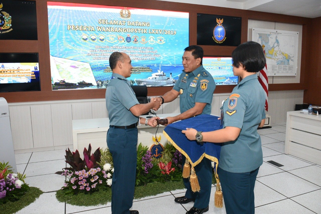 TNI Angkatan Laut menggelar sidang Dewan Pengembangan Operasi dan Taktik (Wanbangopstik) ke-75 Tahun 2019, di Pusat Hidrografi dan Oseanografi TNI Angkatan Laut (Pushidrosal), Jalan Pantai Kuta V/I di Ancol Timur Jakarta Utara, Senin (18/112019).