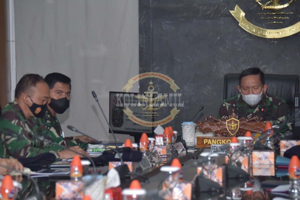 Panglima Komando Lintas Laut Militer (Kolinlamil) Laksda TNI Irvansyah, S.H., CHRMP, M.Tr Opsla menyampaikan Keputusan Konsep Umum Pelibatan Kolinlamil dalam menghadapi kontijensi tahun 2022.Penyampaian yang diawali dengan perkiraan intelijen terkini oleh Asisten Intelijen (Asintel) Kolinlamil Kolonel Laut (E) Gunawan Purwo Handoko dan penyampaian konsep strategi pelibatan Kolinlamil oleh Asisten Operasi (Asops) Kolinlamil Kolonel Laut (P) Nanan Isnandar ini berlangsung di ruang rapat Panglima, Gedung Laut Nusantara, Mako Kolinlamil, Tanjung Priok, Jakarta Utara, Kamis (11/2/2021).