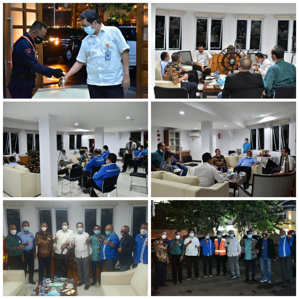 Pertemuan jajaran manajemen IPC Cabang Tanjung Priok dengan stakeholder pengurus INSA Jaya, berjalan dengan lancar dan tetap menerapkan protokol kesehatan mencegah Covid-19. (MM-01).