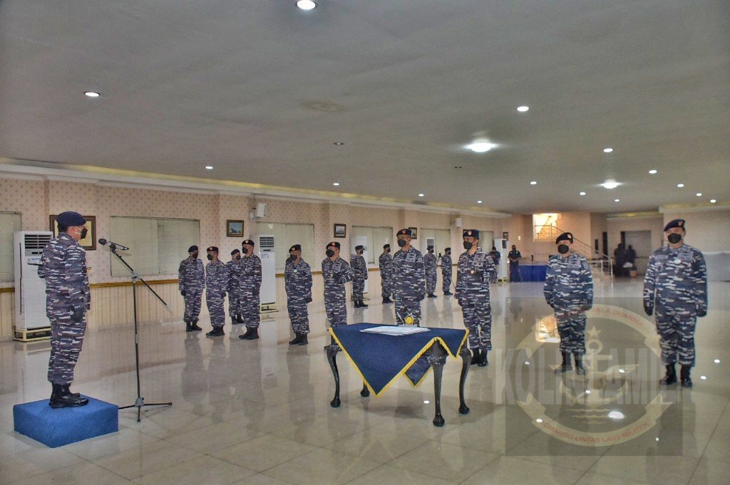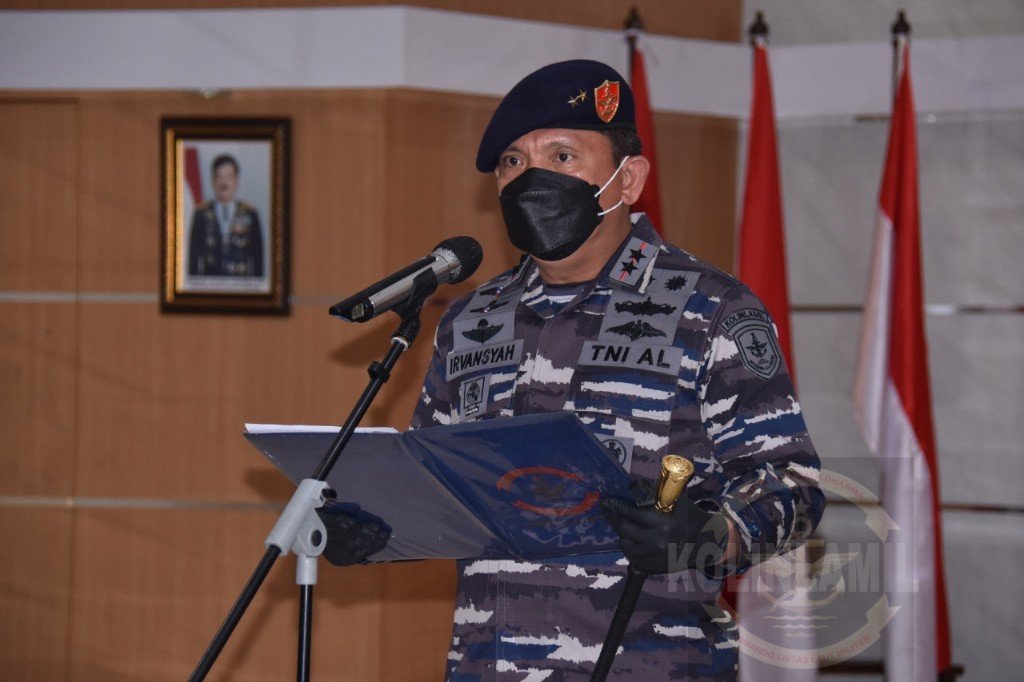 Satya Wira Jala Dharma. Panglima Komando Lintas Laut Militer (Pangkolinlamil) Laksda TNI Irvansyah, S.H., CHRMP, M.Tr Opsla memimpin acara serah terima 3 jabatan strategis Kolinlamil di Gedung Laut Nusantara, Mako Kolinlamil, Tanjung Priok, Jakarta Utara, Jumat (5/3/2021).Ketiga jabatan yang diserahterimakan Asisten Asisten Komunikasi dan Elektronika (Askomlek), Komandan Satlinlamil 1 Jakarta dan 2 Surabaya serta Kepala Keuangan Wilayah (Kakuwil) Kolinlamil.