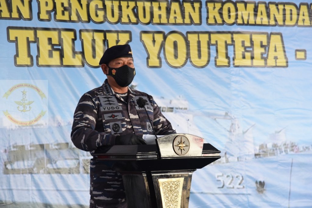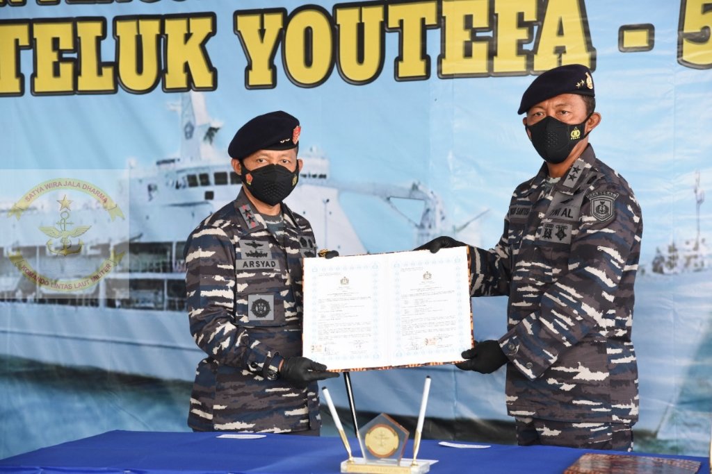 “Hari ini kita telah melaksanakan serah terima KRI Teluk Youtefa-522 kemudian peresmian KRI dan juga pengukuhan komandan KRI Teluk Youtefa-522,” kata Kasal kepada awak media.