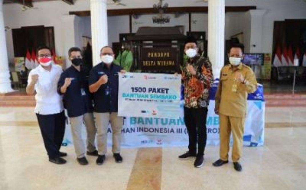 Dukungan terdahap pemerintah atas pemberlakukan pembatasan kegiatan masyarakat (PPKM) terus mengalir. Dukungan tersebut salah satunya datang dari PT Pelabuhan Indonesia III (Persero) atau Pelindo III. Kali ini, Pelindo III membagikan 1.500 paket sembako bagi masyarakat terdampak di Kabupaten Sidoarjo, Jawa Timur. Penyerahan bantuan dilaksanakan di Pendopo Delta Wibawa dan diterima langsung oleh Bupati Sidoarjo Ahmad Muhdlor Ali, Senin (9/8/2021).