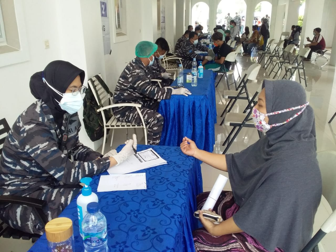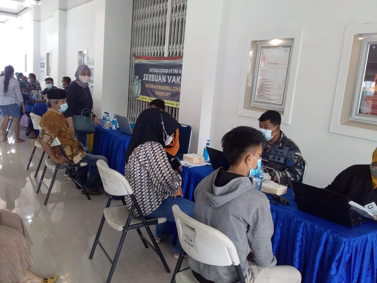 TNI Angkatan Laut (TNI AL) melalui Pusat Hidro-Oseanografi TNI Angkatan Laut (Pushidrosal) kembali menggelar serbuan vaksinasi massal bagi masyarakat maritim Rawa Badak Utara yang dipusatkan di SMK Perguruan Cikini di Jalan Alur Laut Blok NN No.1, Koja Jakarta Utara. Kamis (19/8/2021).
