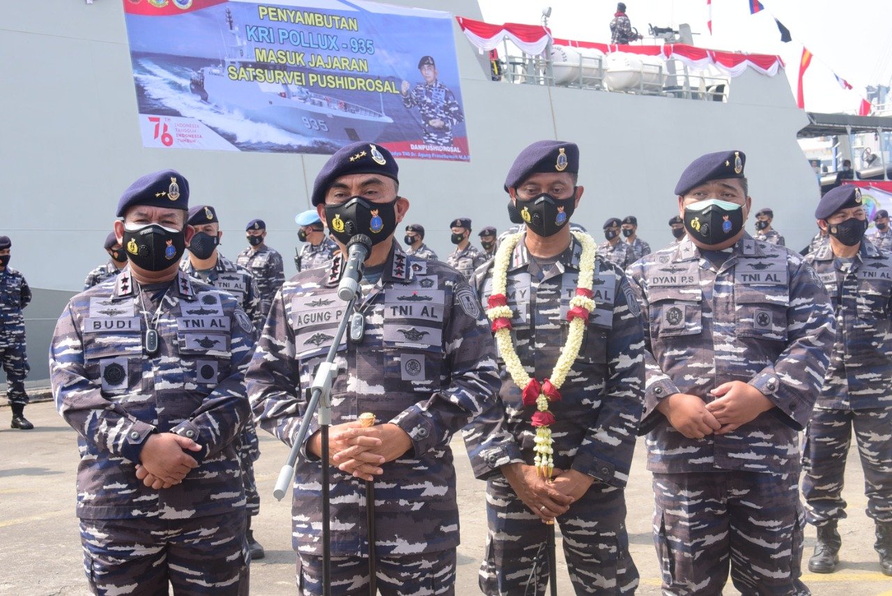 Komandan Pushidrosal dalam sambutannya antara lain mengatakan bahwa kehadiran KRI Pollux-935 tentunya akan semakin memperkuat unsur kapl survei di lingkungan Pushidrosal sehingga secara jelas menegaskan bahwa kehadiran KRI Pollux-935 diharapkan mampu menambah semangat serta menajamkan kemampuan TNI AL dalam melaksanakan tugas-tugas survei dan pemetaan laut.