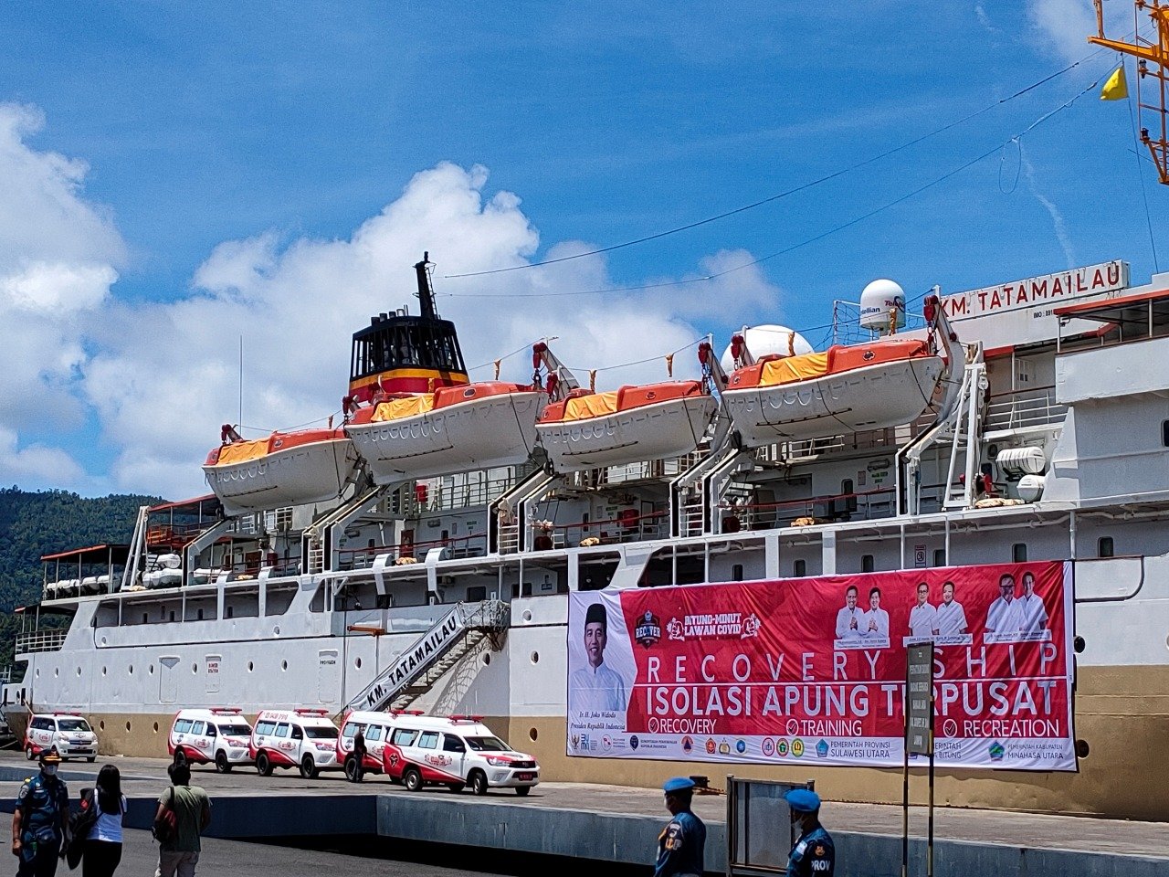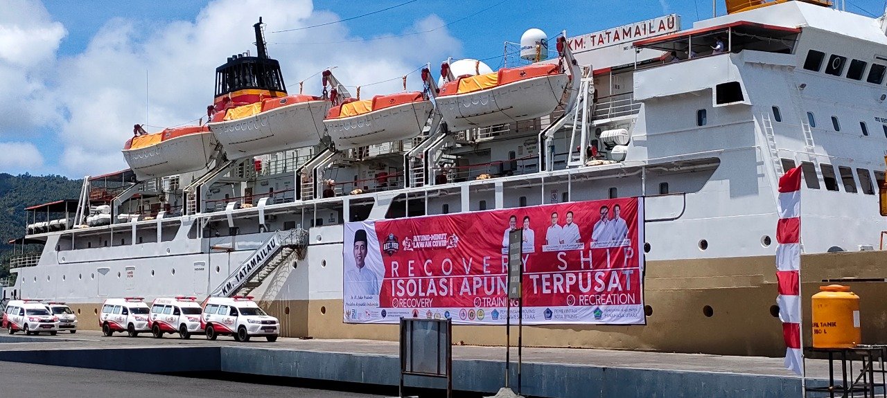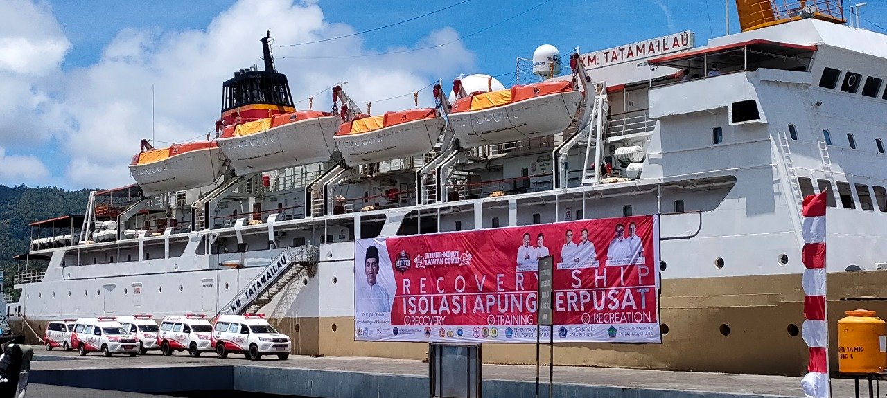 Pemerintah Kota Bitung bersama Pemkab Minahas Utara, Sulawesi Utara, dengan didukung penuh PT Pelabuhan Indonesia IV (Persero) dan PT Pelayaran Nasional Indonesia (Pelni) melakukan soft launching pengoperasian fasilitas Isolasi Mandiri Apung (Isoman Apung) Terpusat di KM Tatamailau yang sandar di Pelabuhan Bitung, Jumat (20 Agustus 2021) kemarin.