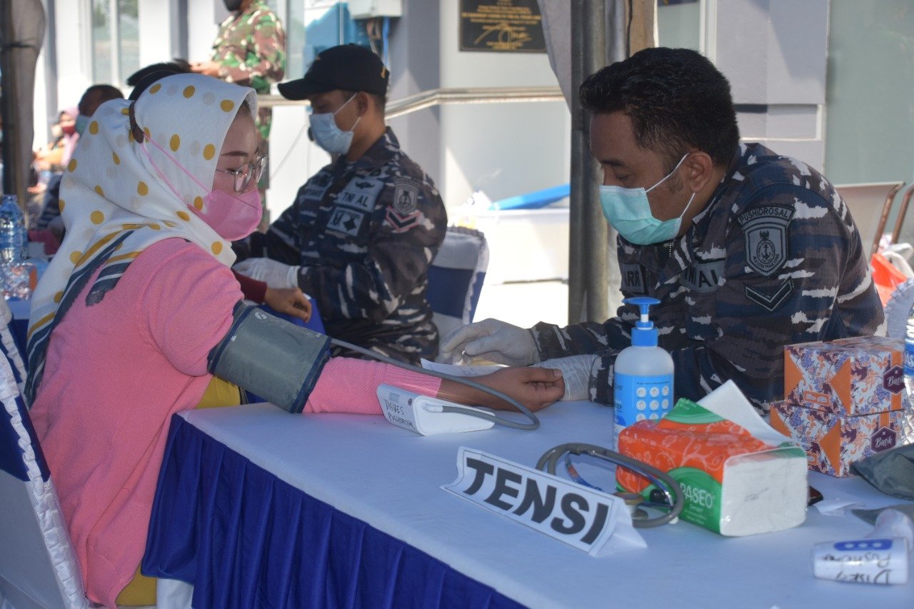 “Kami dalam kegiatan ini memberikan vaksin tahap pertama dengan menggunakan vaksin jenis Sinovac. Selain menggelar vaksinasi, Pushidrosal juga menyerahkan bantuan 250 paket sembako kepada masyarakat sekitar. Pemberian paket sembako ini merupakan salah satu bentuk kepedulian TNI AL terhadap masyarakat yang terkena dampak pandemi Covid-19,”(MM-01)..