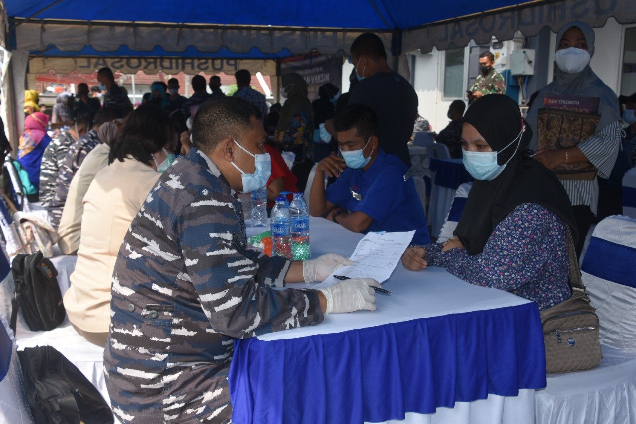 Danpushidrosal saat meninjau kegiatan ini menyampaikan vaksinasi kali ini menargetkan peserta vaksin sebanyak 600 orang. Dengan target peserta vaksin mulai dari anak-anak berusia sekitar 12 tahun hingga orang dewasa.