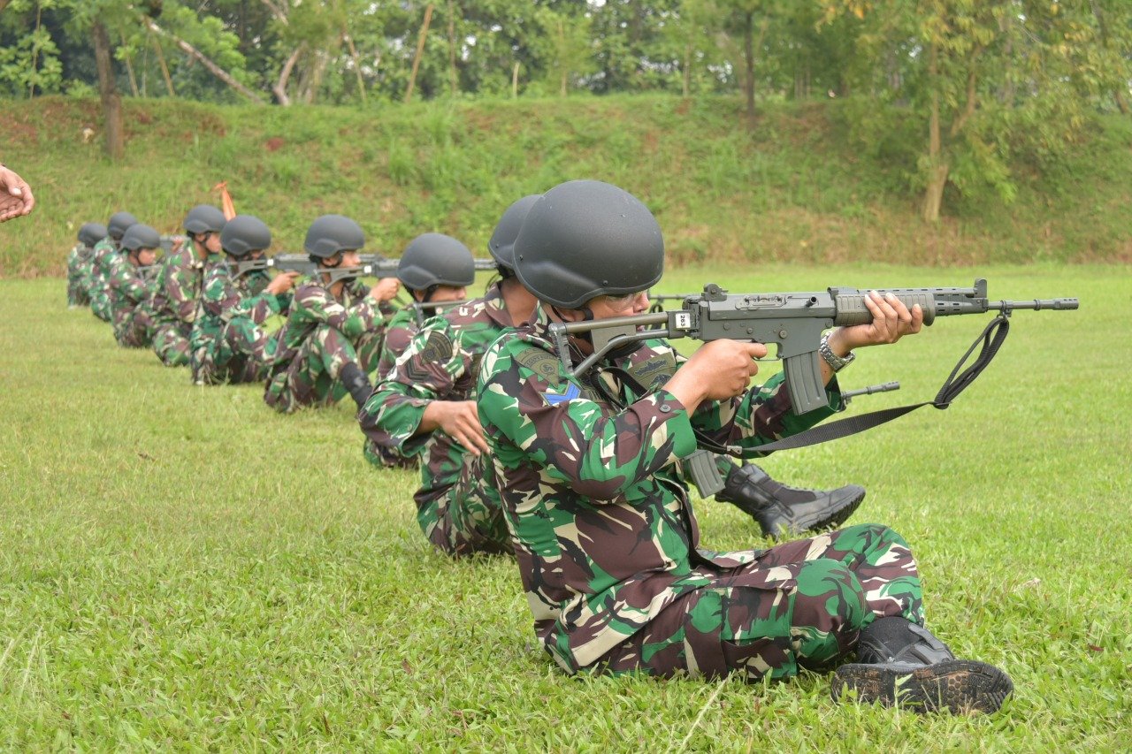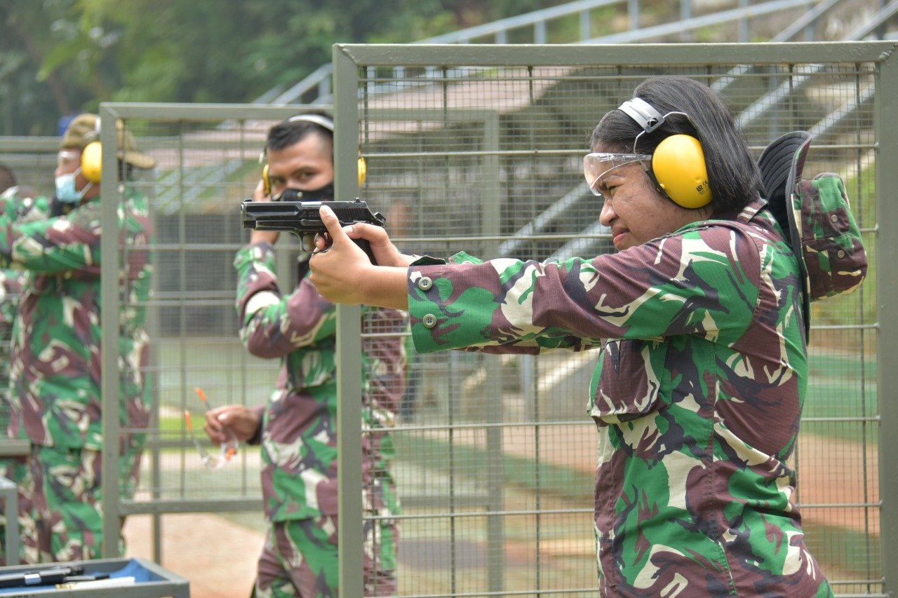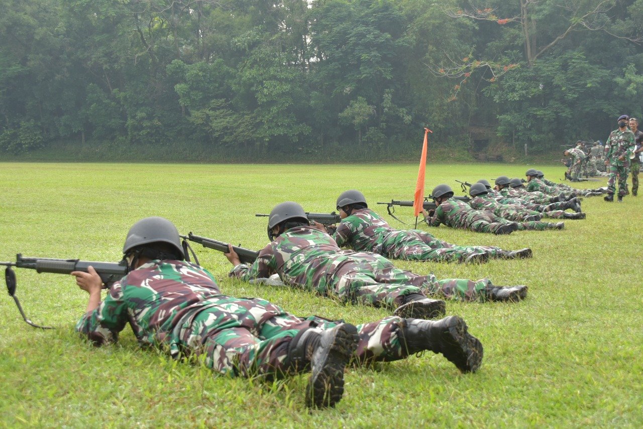Pada latihan menembak, Rabu (15/9/2021) para peserta latihan yang berjumlah 55 prajurit dari perwira, bintara dan tamtama menggunakan senjata laras panjang SS1 dan senjata pistol G2 kaliber 9 mm.