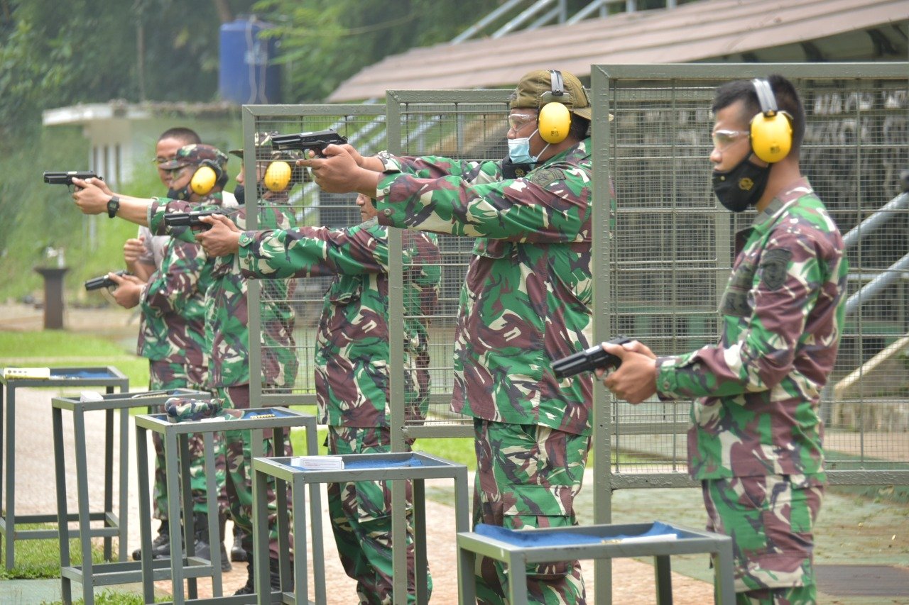 Satya Wira Jala Dharma. Banyak cara untuk menjaga imunitas tubuh dimasa masih mewabahnya covid 19. Salah satunya dengan mengasah naluri tempur bagi prajurit Komando Lintas Laut Militer (Kolinlamil) dengan mengikuti latihan menembak di Lapangan Menkav-1 Marinir, Cilandak, Jakarta Selatan.