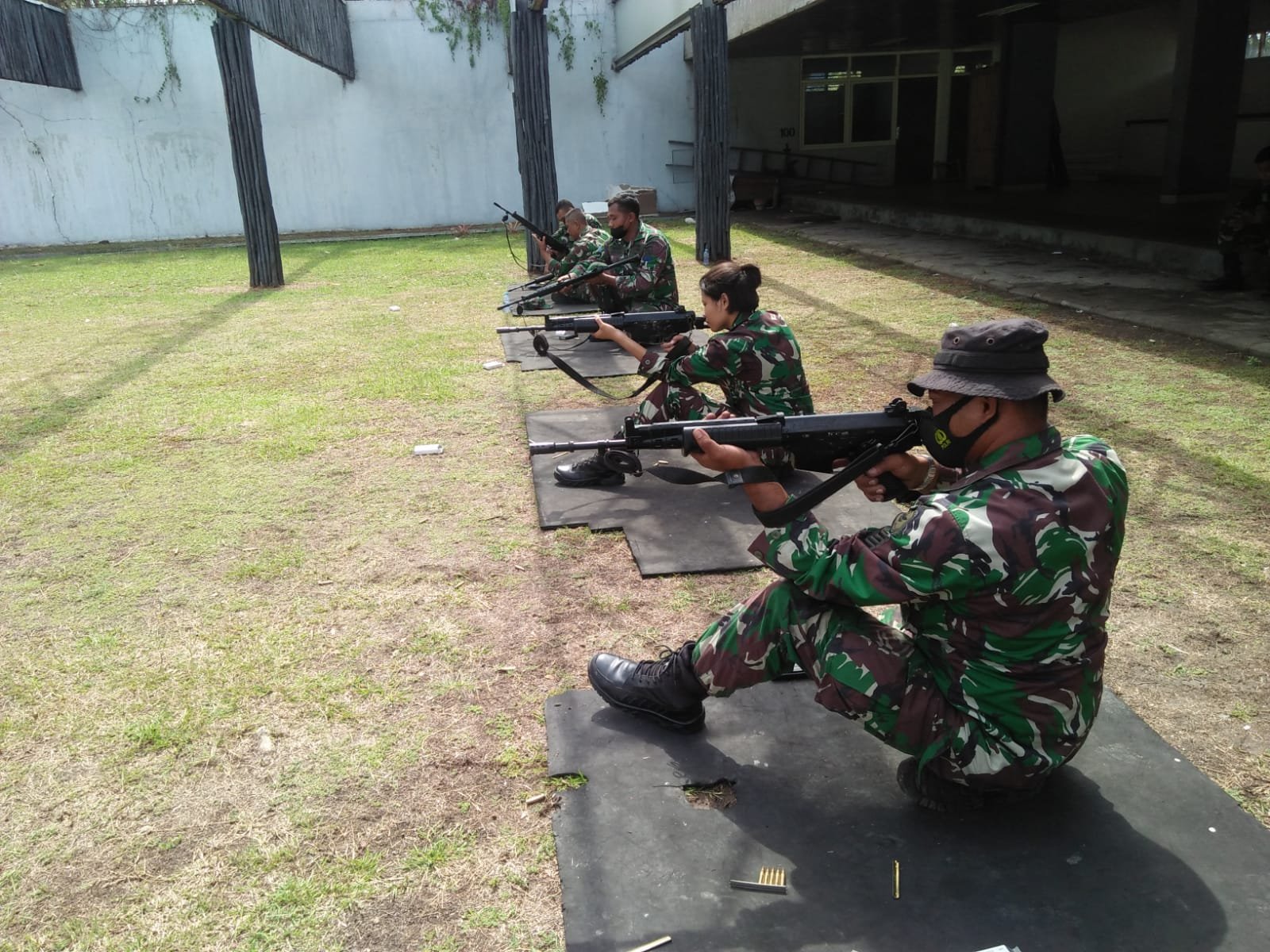 Para perwira melaksanakan latihan menembak dengan pistol jenis Sig Sauer, P2 dan FN. Sedangkan bintara dan tamtama menggunakan senapan laras panjang jenis SS1.