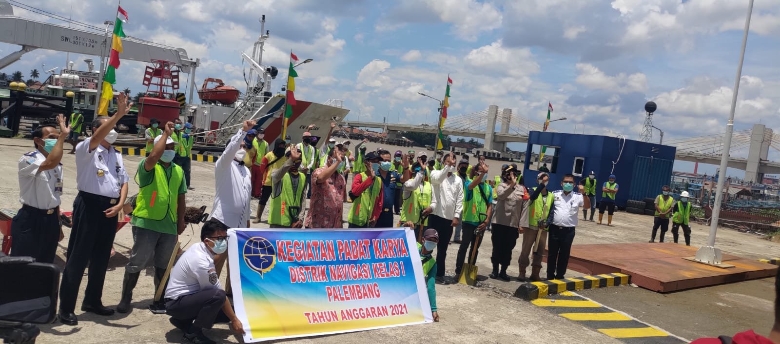 Pada kegiatan program padat karya tahap ke II tersebut yang berlokasi khususnya di sekitar lingkungan kantor Disnav Kelas I Palembang merupakan kolaborasi/ kerjasama antara Kementerian Perhubungan dengan BUMN, IPC/PT Pelabuhan Indonesia II (Persero) Cabang Palembang.