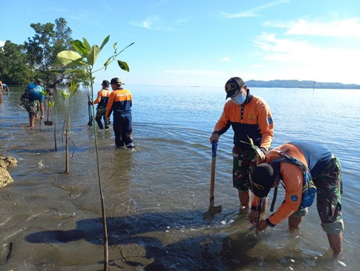 Sebagai wujud peran serta dalam melindungi pantai kikis serta melestarikan lingkungan pesisir TNI Angkatan Laut menggelar Penanaman Mangrove di Pantai Simboro Kabupaten Mamuju Sulawesi Barat, Sabtu (25/9/2021).