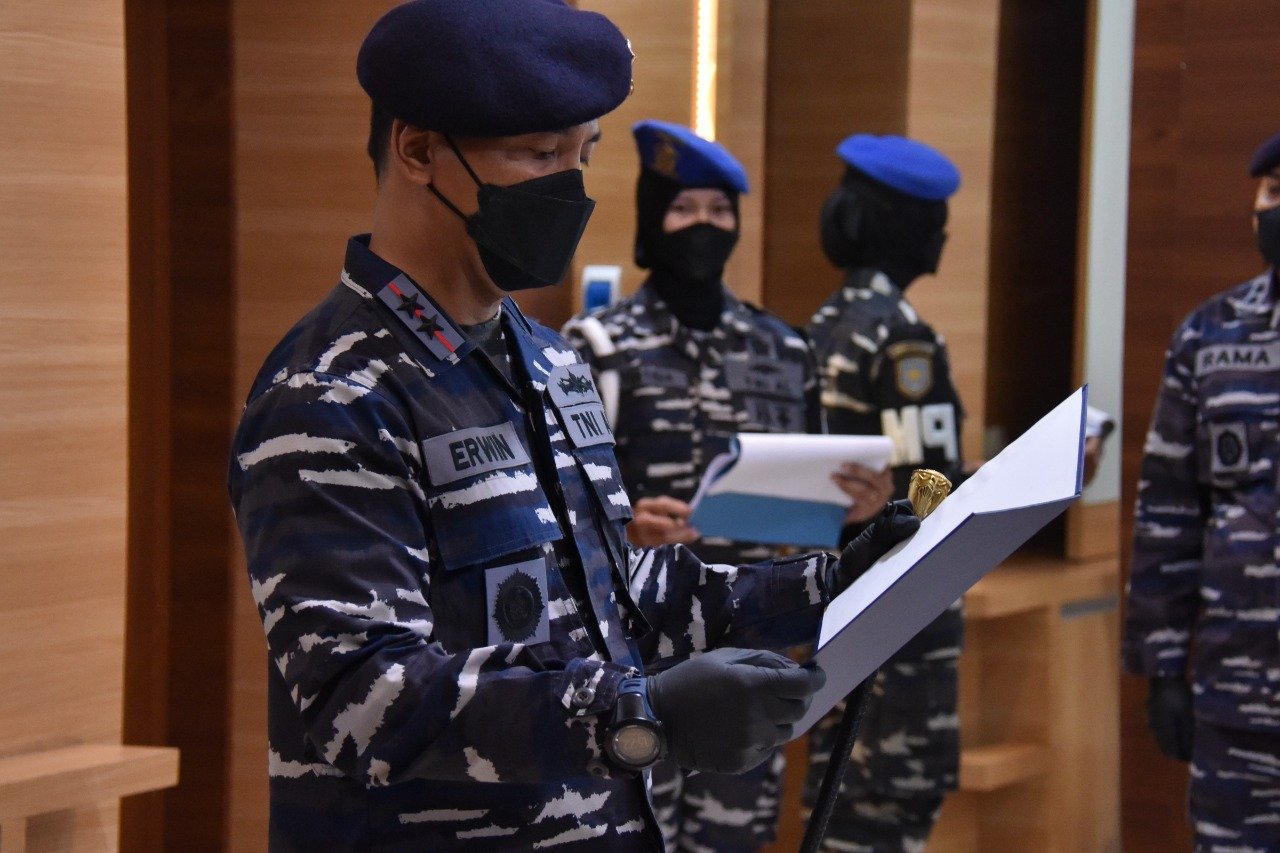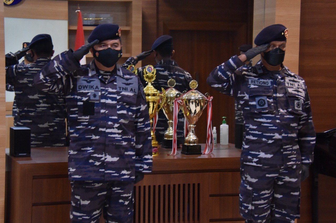Satya Wira Jala Dharma. Jabatan Kepala Staf Kolinlamil (Kaskolinlamil) diserahterimakan dari Laksamana Pertama TNI Dwika Tjahja Setiawan kepada Laksamana Pertama TNI Retiono Kunto H dalam upacara serah terima jabatan yang dipimpin Panglima Komando Lintas Laut Militer (Pangkolinlamil) Laksamana Muda TNI Erwin S Aldedharma di Mako Kolinlamil, Tanjung Priok, Jakarta Utara, Jumat (24/9/2021).