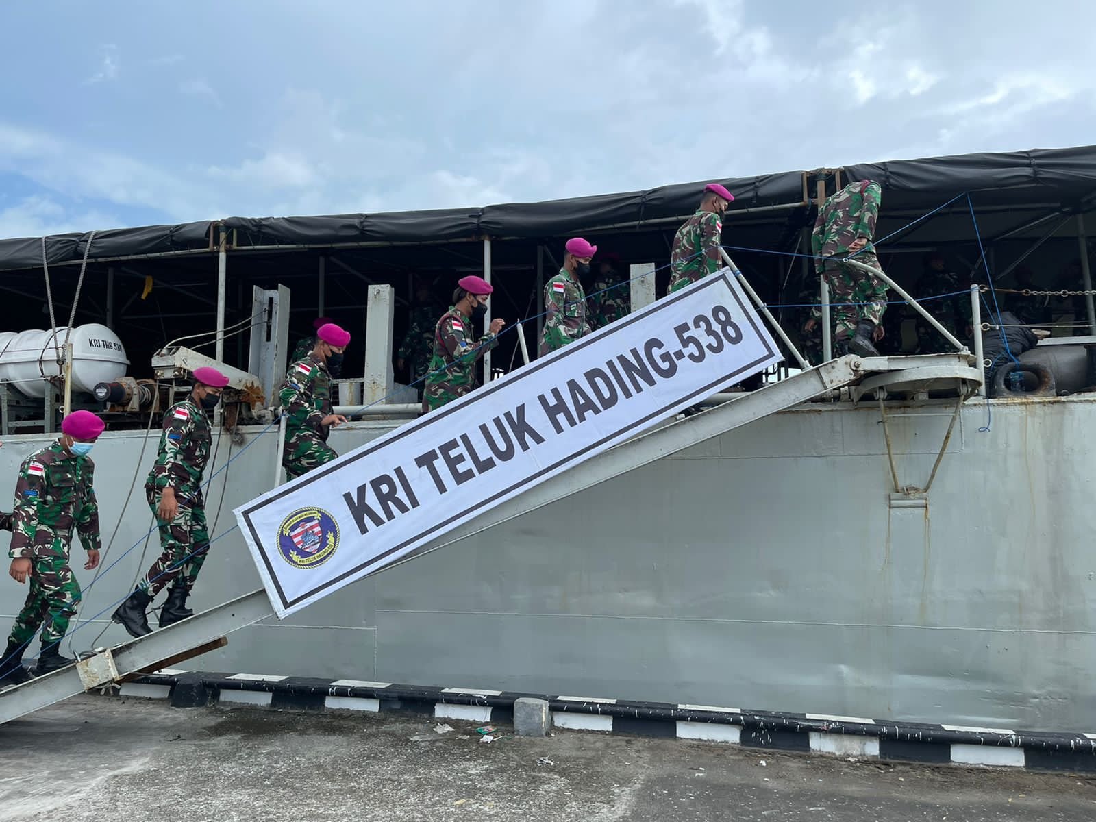 Menurut Pelaksana Tugas Komandan KRI Teluk Hading 538 Mayor Laut (P) Tedi Febrian, saat ini kapalnya sedang embarkasi personel dan material pasukan Satgas Pamputer. Dan rencananya mereka akan langsung bertolak menuju daerah operasi untuk debarkasi 34 prajurit Satgas Pamputer.