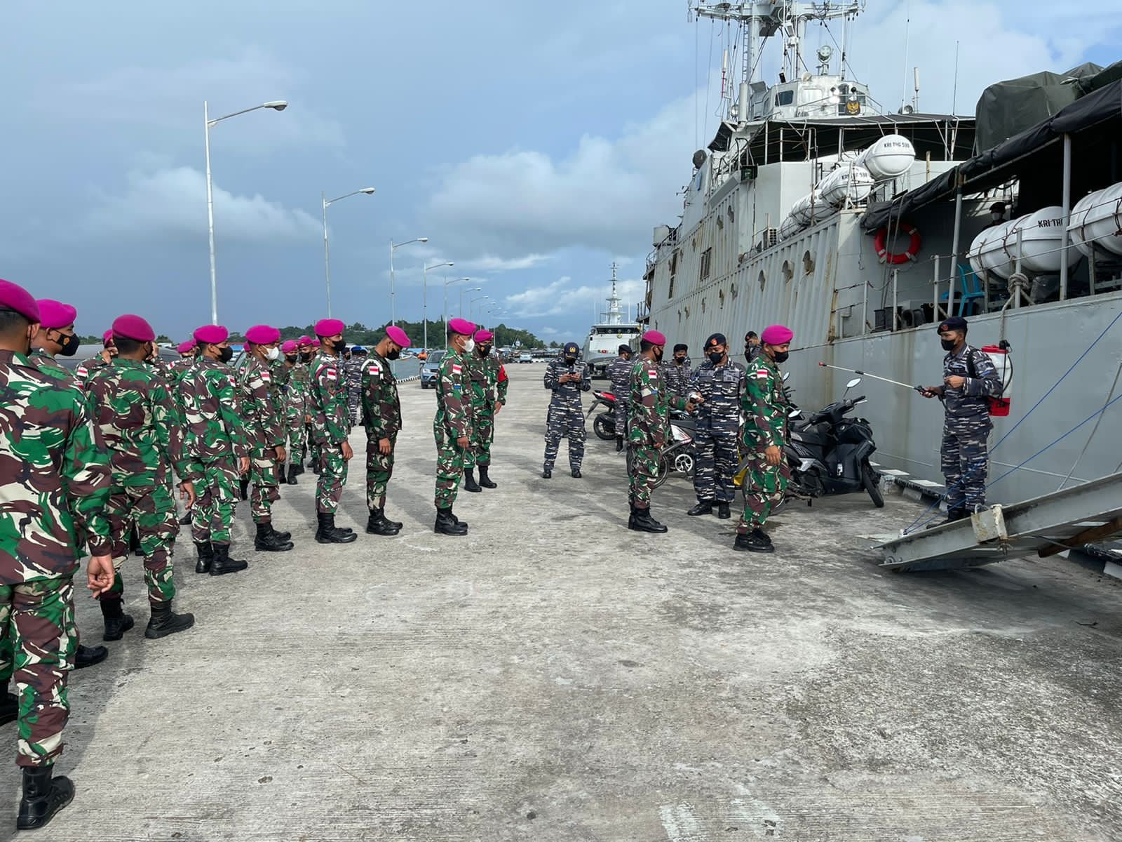 KRI Teluk Hading 538 sandar di Dermaga Sorong, Papua, beberapa saat yang lalu untuk embarkasi pasukan Marinir Satgas Pengamanan Pulau Terluar (Pamputer) dari Pasmar 3 Sorong.