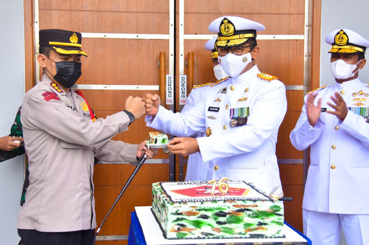 Sebagai bentuk solidaritas dan penghargaan kepada TNI dihari jadinya ke-76, Kepolisian Resort Metro Jakarta Utara dan Polres KP3 mengunjungi Mako Kolinlamil untuk menyampaikan ucapan Dirgahayu TNI ke-76, Selasa (5/10/2021).