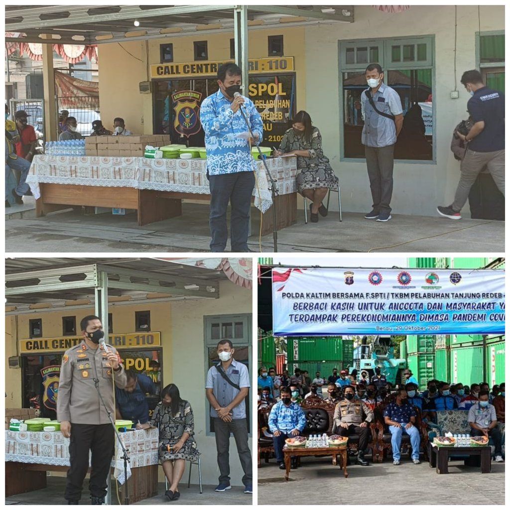 Kementerian Perhubungan Cq Direktorat Jenderal Perhubungan Laut melalui Kantor Unit Pelaksana Pelabuhan (KUPP) Kelas II Tanjung Redeb, bersama Polda Kalimantan Timur, Polres Berau dan Federasi Serikat Pekerja Transport Indonesia (SPTI) atau Tenaga Kerja Bongkar Muat (TKBM) Pelabuhan Tanjung Redeb melaksanakan kegiatan bakti sosial kepada masyarakat Maritim di Pelabuhan Tanjung Redeb, Jumat (29/10/2021).