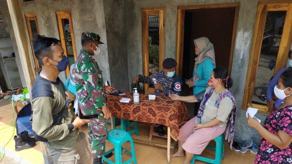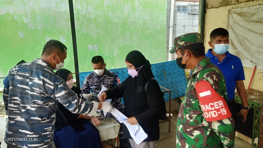 TNI AL mengerahkan lima tenaga kesehatannya dengan didukung tenaga kesehatan dari Puskesmas Cibungbulang dan aparat pemerintah setempat melakukan vaksinasi bagi warga desa Ciaruteun Ilir yang belum memperoleh vaksinasi.