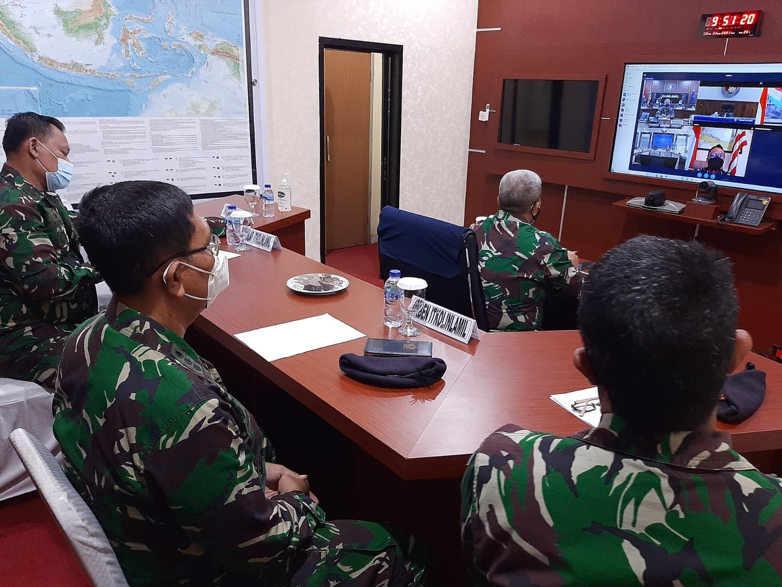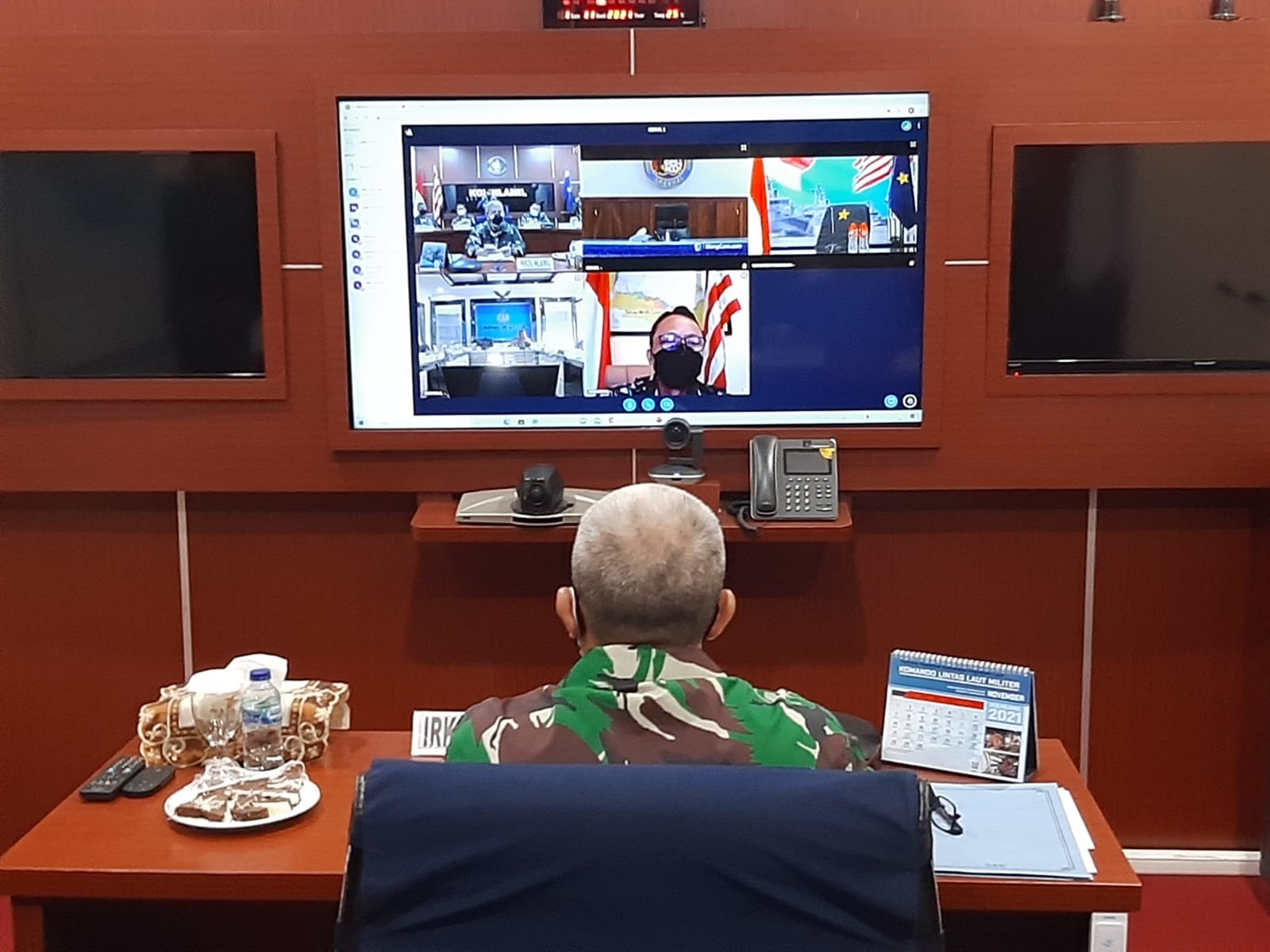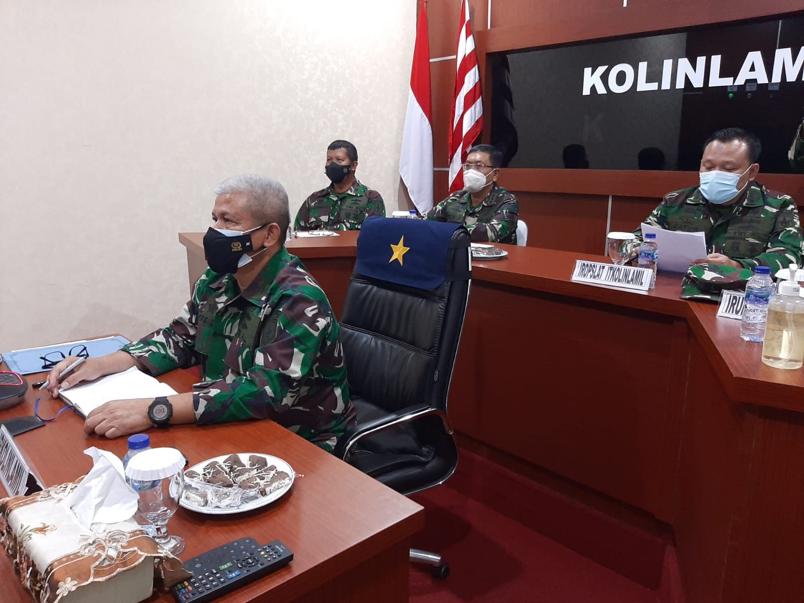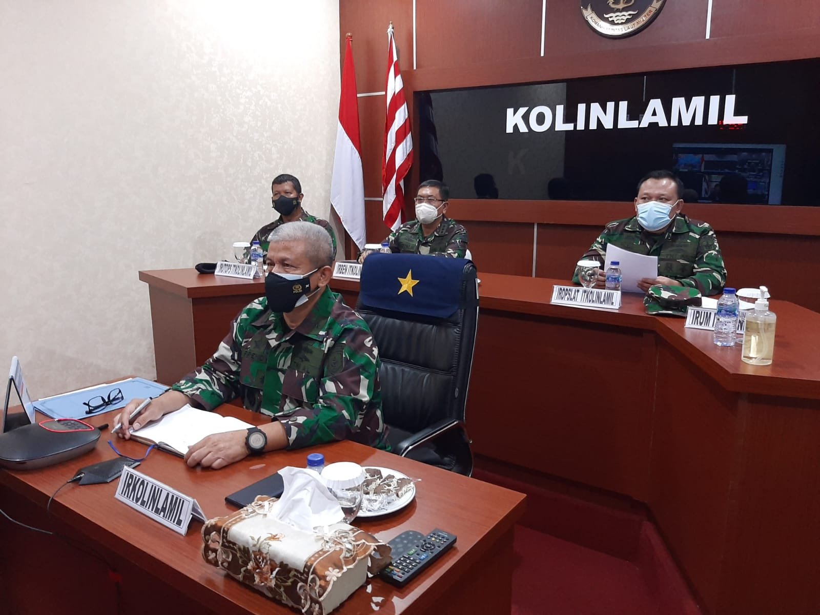 Satya Wira Jala Dharma. Inspektorat Komando Lintas Laut Militer Laksma TNI Frendy H Saragih menerima Tim Pengawasan Pemeriksaan (Wasrik) dari Badan Pemeriksaan Keuangan (BPK) Republik Indonesia melalui video conference dari ruang Puskodal, Mako Kolinlamil, Tanjung Priok, Jakarta Utara, Senin (1/11/2021).