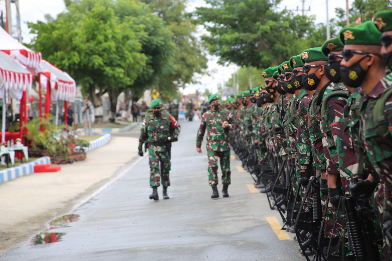 Pelepasan batalion Satgas Pamtas Papua ini dipimpin Pangdam XIII Merdeka Mayjen TNI Wanti Waranei F Mamahit berlangsung di Dermaga Mako Lanal Palu, beberapa saat yang lalu.