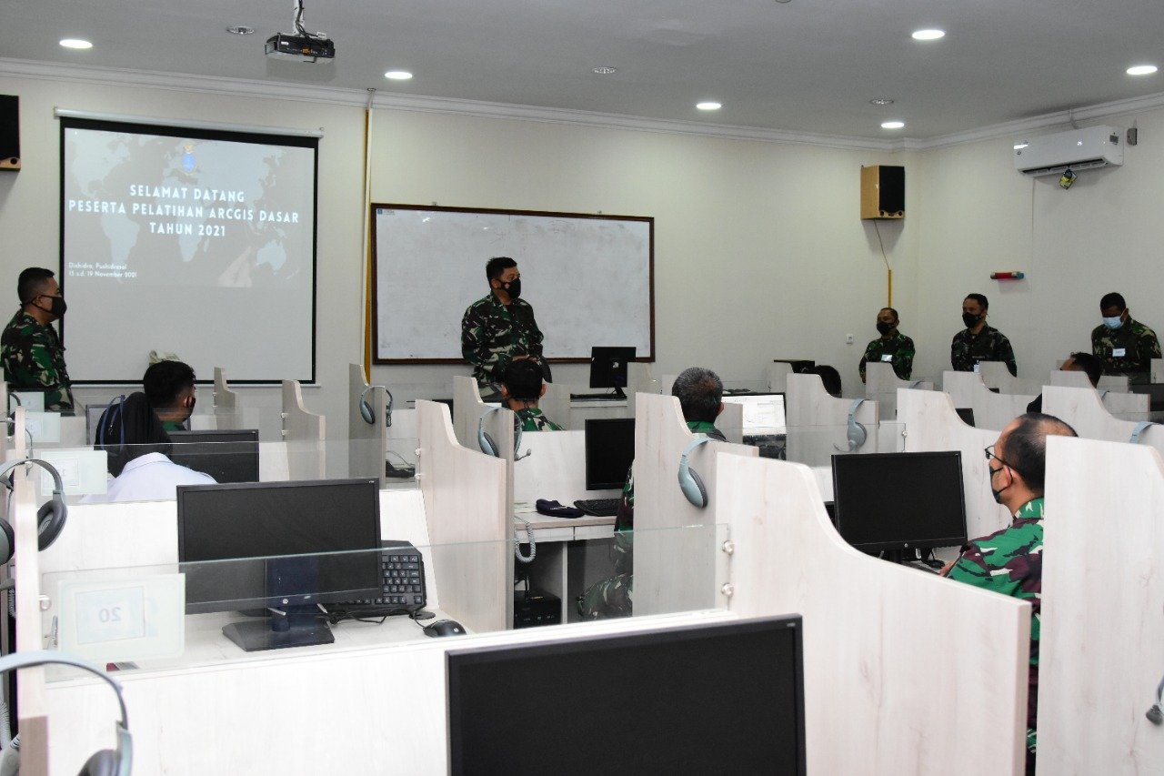 Guna meningkatkan proffesionalisme personel, Pusat Hidro-Oseanografi TNI AL (Pushidrosal) menggelar pelatihan ArcGIS tingkat Dasar, Senin (15/11/2021).