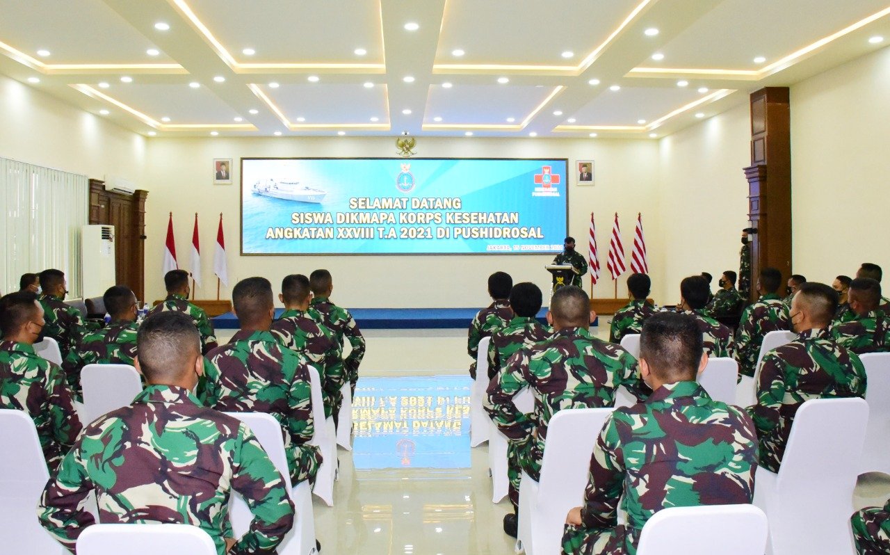 Pusat Hidro-Oseanografi TNI Angkatan Laut (Pushidrosal) menerima kunjungan Siswa Dikmapa Kesehatan Angkatan XXVIII T.A 2021 di Aula Gedung Serba Guna, Markas Komando (Mako) Pushidrosal, Jalan Pantai Kuta V/I, Ancol Timur, Jakarta Utara. Senin (15/11/2021).