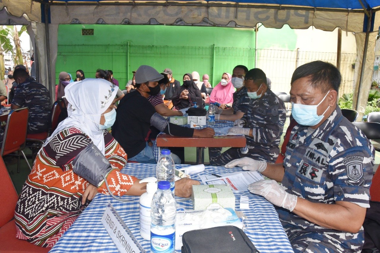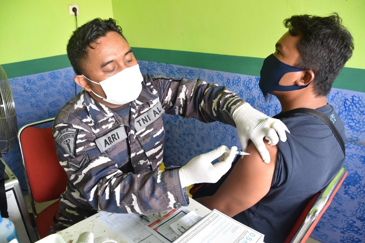 TNI Angkatan Laut (TNI AL) dalam hal ini Pusat Hidro-Oseanografi TNI AL (Pushidrosal) kembali menggelar vaksinasi covid-19 dengan sasaran masyarakat maritim di wilayah Cilincing, Jakarta Utara. Kamis (25/11/2021).