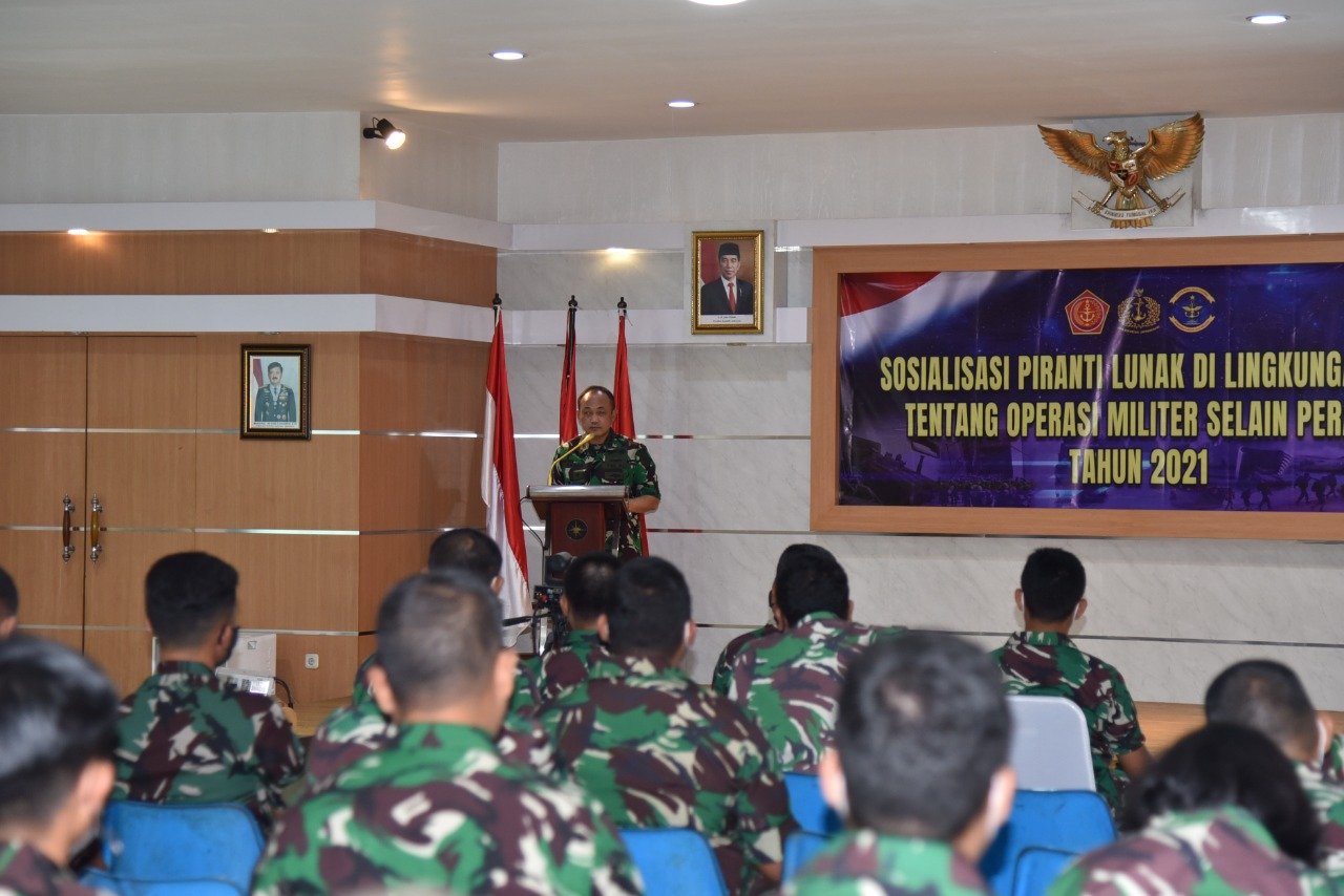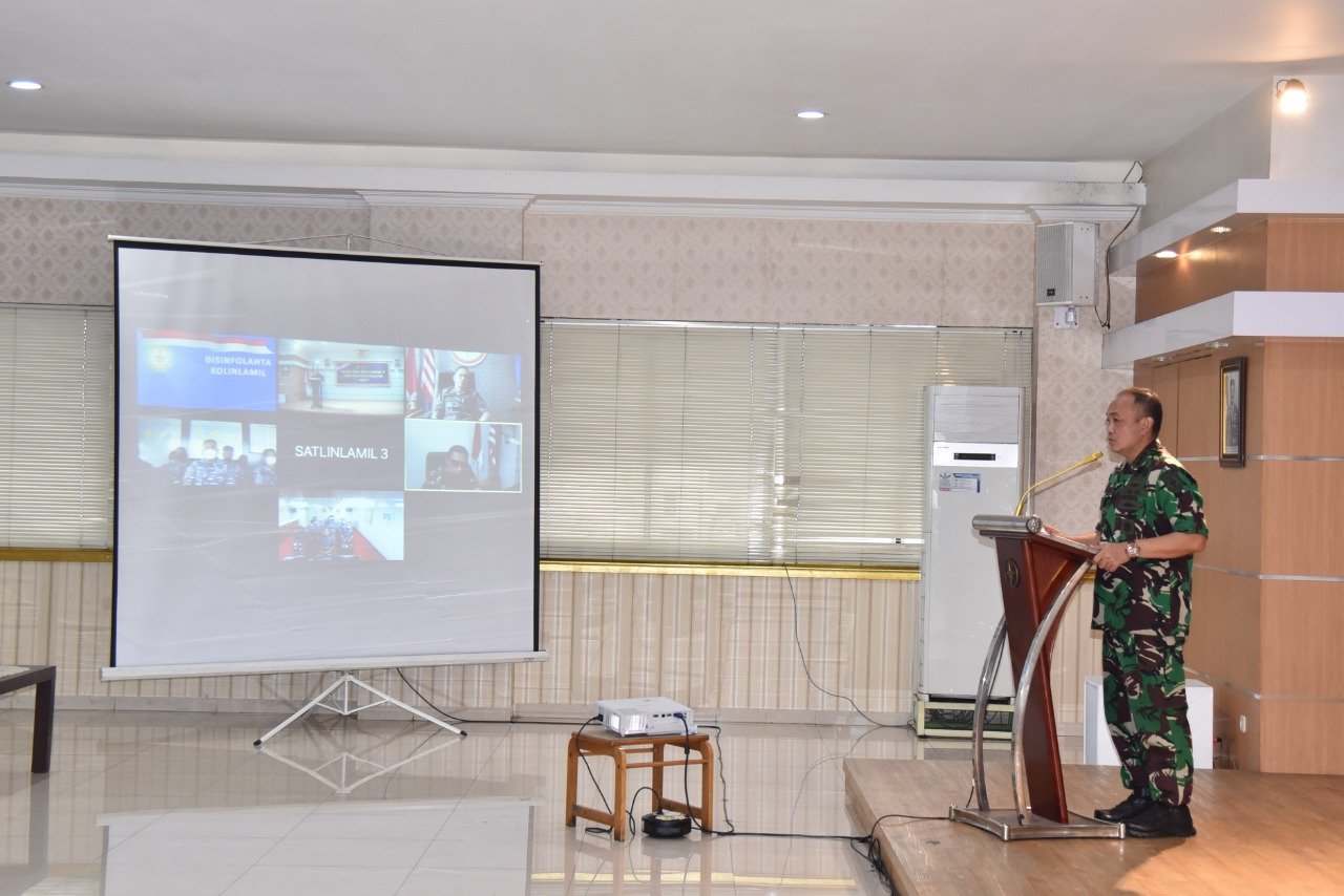 Satya Wira Jala Dharma. Komando Lintas Laut Militer (Kolinlamil) menggelar sosialisasi Pencerahan Piranti Lunak Operasi Militer Selain Perang (OMSP) pada jajaran perwira Kolinlamil yang diikuti 55 perwira Mako dan Satlinlamil 1,2 dan 3 di Mako Kolinlamil, Tanjung Priok, Jakarta Utara, Selasa (30/11/2021) kemarin secara tatap muka dan virtual.