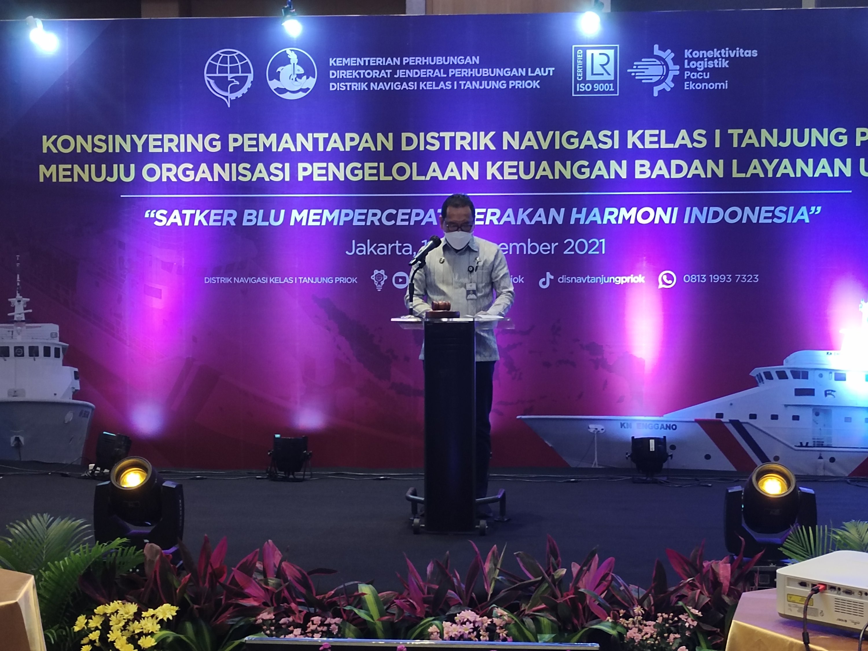 Plt. Dirjen Perhubungan Laut Arif Toha saat membuka acara dalam sambutannya menyampaikan Direktorat Jenderal Perhubungan Laut melalui UPT Distrik Navigasi Kelas I Tanjung Priok akan menuju Badan Layanan Umum (BLU). Untuk memberikan pelayanan kepada masyarakat maritim baik itu berupa barang dan layanan jasa yang dijual tanpa mengutamakan cari untung dan memegang prinsip efisiensi serta produktivitas.