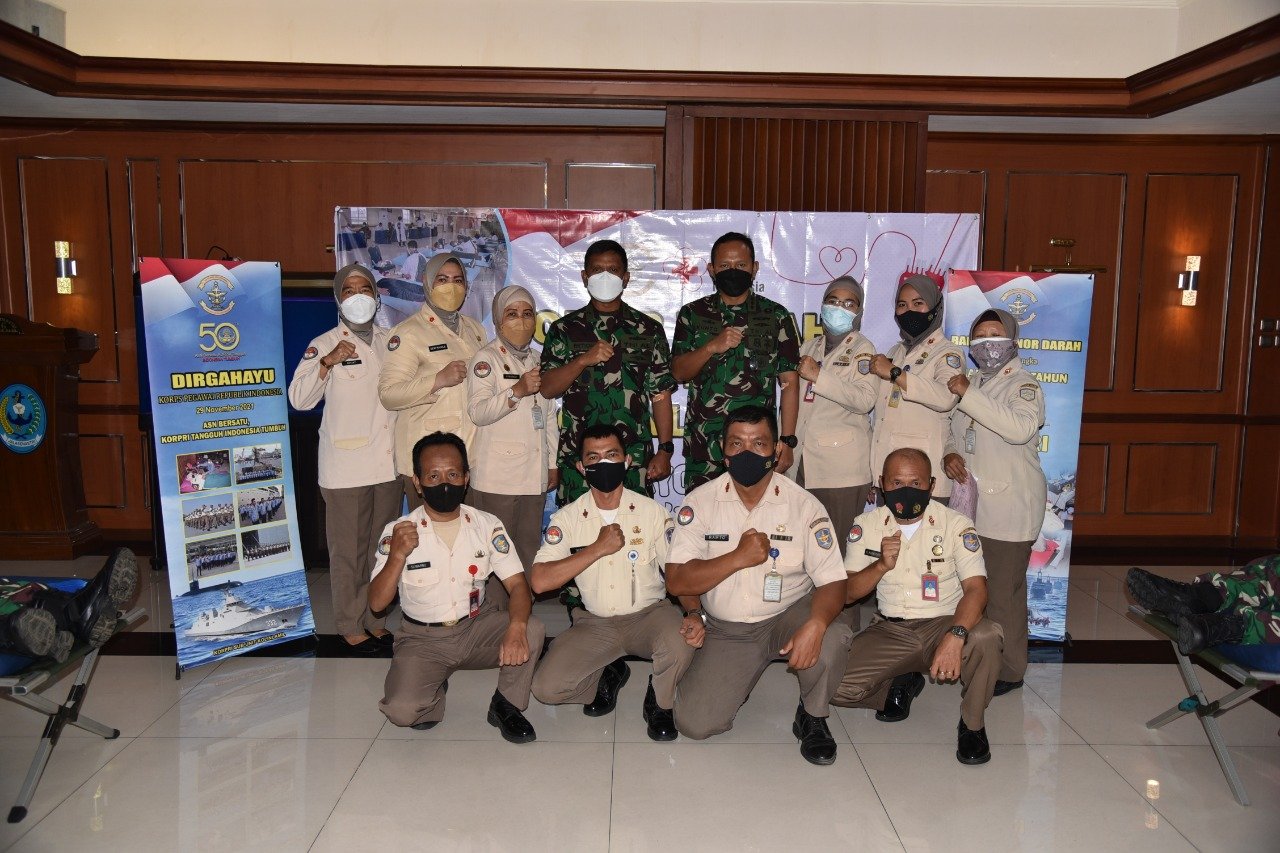 Satya Wira Jala Dharma. Komando Lintas Laut Militer melakukan donor darah reguler di Mako Kolinlamil, Tanjung Priok, Jakarta Utara, hari ini Rabu (8/12/2021). Antuasiame yang cukup tinggi dari prajurit Kolinlamil yang ingin melakukan donor darah reguler.