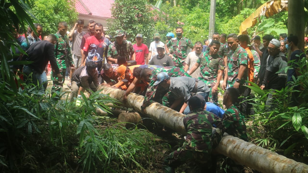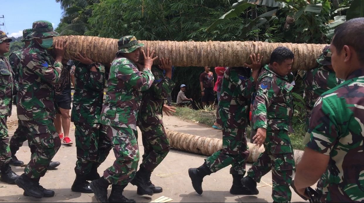 “Kita pastikan jembatan alternatif ini segera jadi agar mobiltas masyarakat lancar. Personel Brigif 4 Marinir/BS bekerja sama memindahkan pokok pohon kelapa sebagai jembatan sembari menunggu alat berat datang,” ujar Danbrigif 4 Marinir/BS.