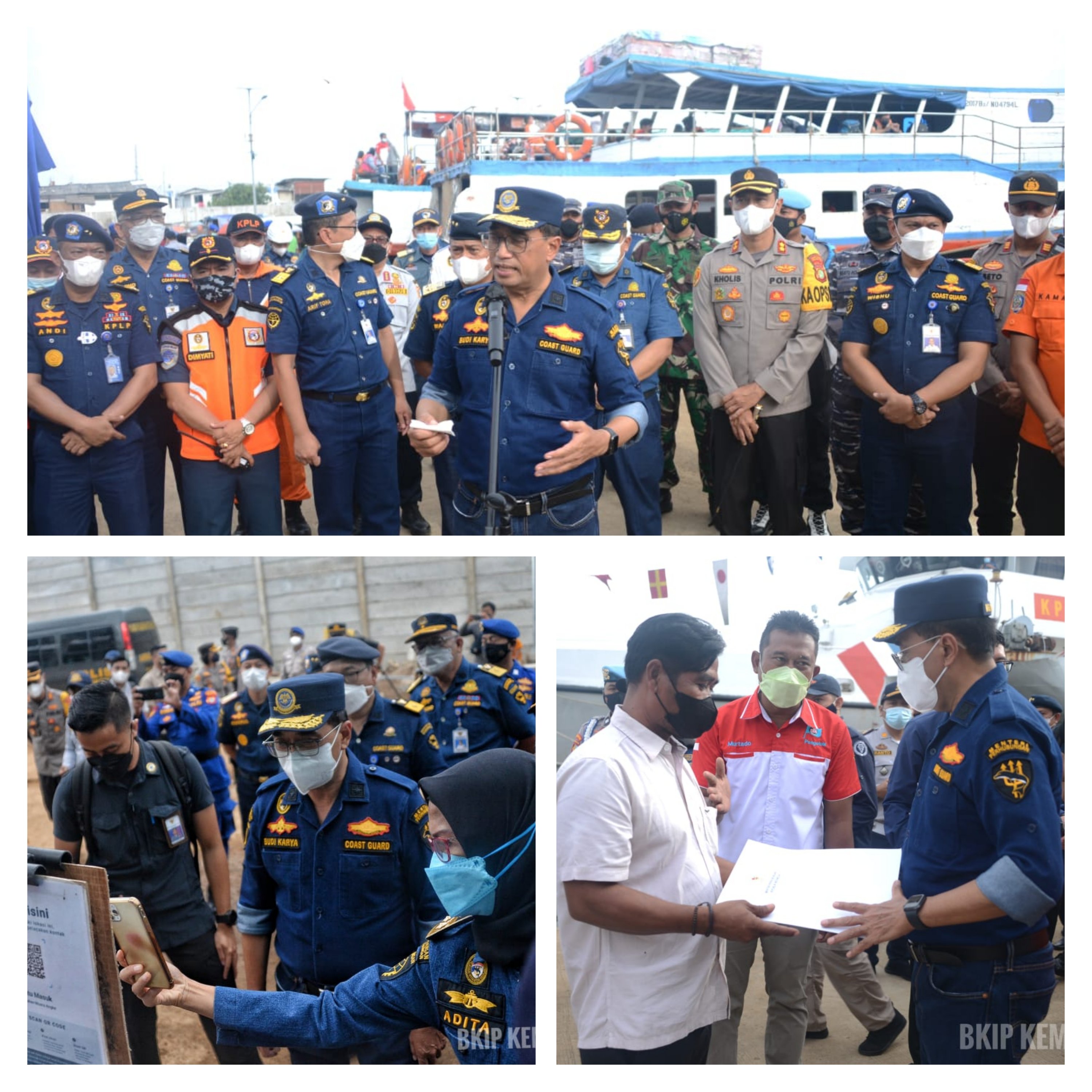 Pada kesempatan itu, Menhub menyampaikan terima kasih kepada para petugas dari Syahbandar, Polres, Dishub, dan unsur terkait lainnya yang telah melakukan tugasnya dengan baik. Dalam tinjauannya, Menhub membagikan masker dan makanan kepada penumpang kapal, serta jaket keselamatan untuk awak kapal.