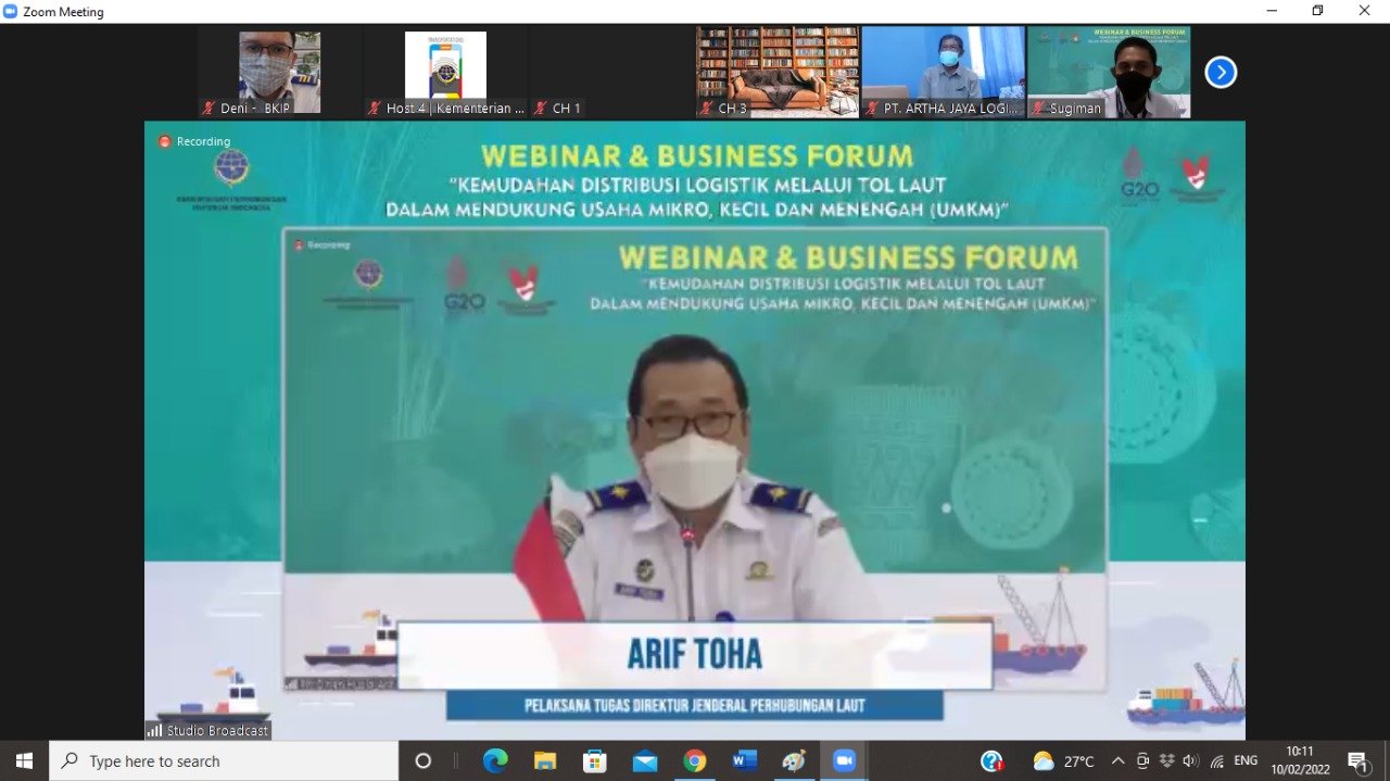 Pada kesempatan yang sama, Plt. Dirjen Perhubungan Laut Arif Toha menjelaskan, kegiatan webinar ini dilakukan untuk berbagi informasi dan mempertemukan para pelaku logistik dengan pelaku UMKM dalam rangka mensukseskan Gerakan Nasional Bangga Buatan Indonesia (Gernas BBI).