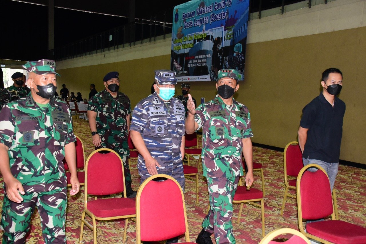 TNI AL melalui Pusat Hidro-Oseanografi TNI Angkatan Laut (Pushidrosal) menggelar Serbuan vaksinasi Booster bagi karyawan Taman Impian Jaya Ancol, Jakarta Utara, Kamis (10/2/2022)