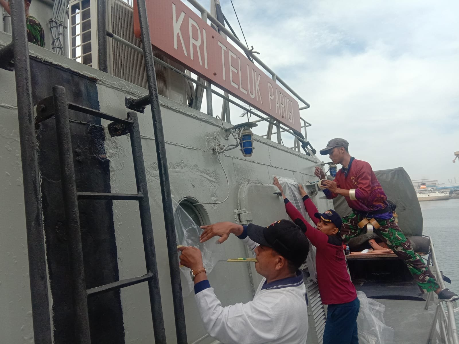 Dalam rangka menciptakan lingkungan kerja dan lingkungan tempat tinggal yang sehat, KRI Teluk Parigi-539 yang saat ini sedang sandar di pangkalan Surabaya melaksanakan fumigasi guna membasmi musuh dalam selimut bagi prajurit KRI, Rabu (23/2/2022).
