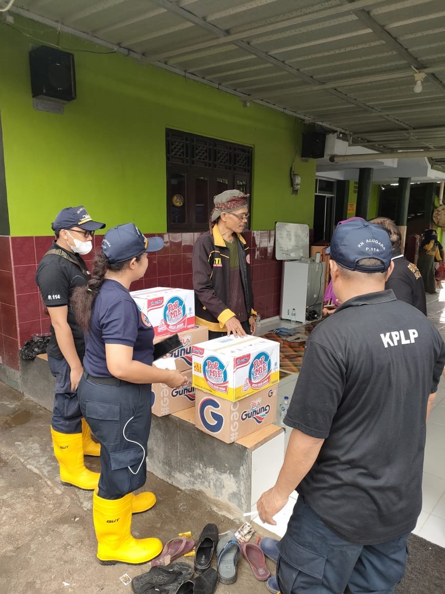 Selain proses evakuasi, pihaknya juga telah memberikan bantuan sumbangan sembako dan perlengkapan darurat lainnya yang dibutuhkan korban banjir bandang. Bantuan diterima secara simbolis oleh Ketua RW 11 Tata Winata.