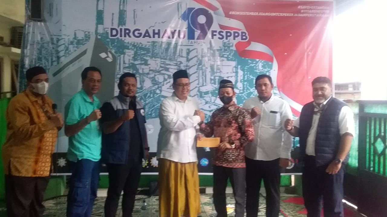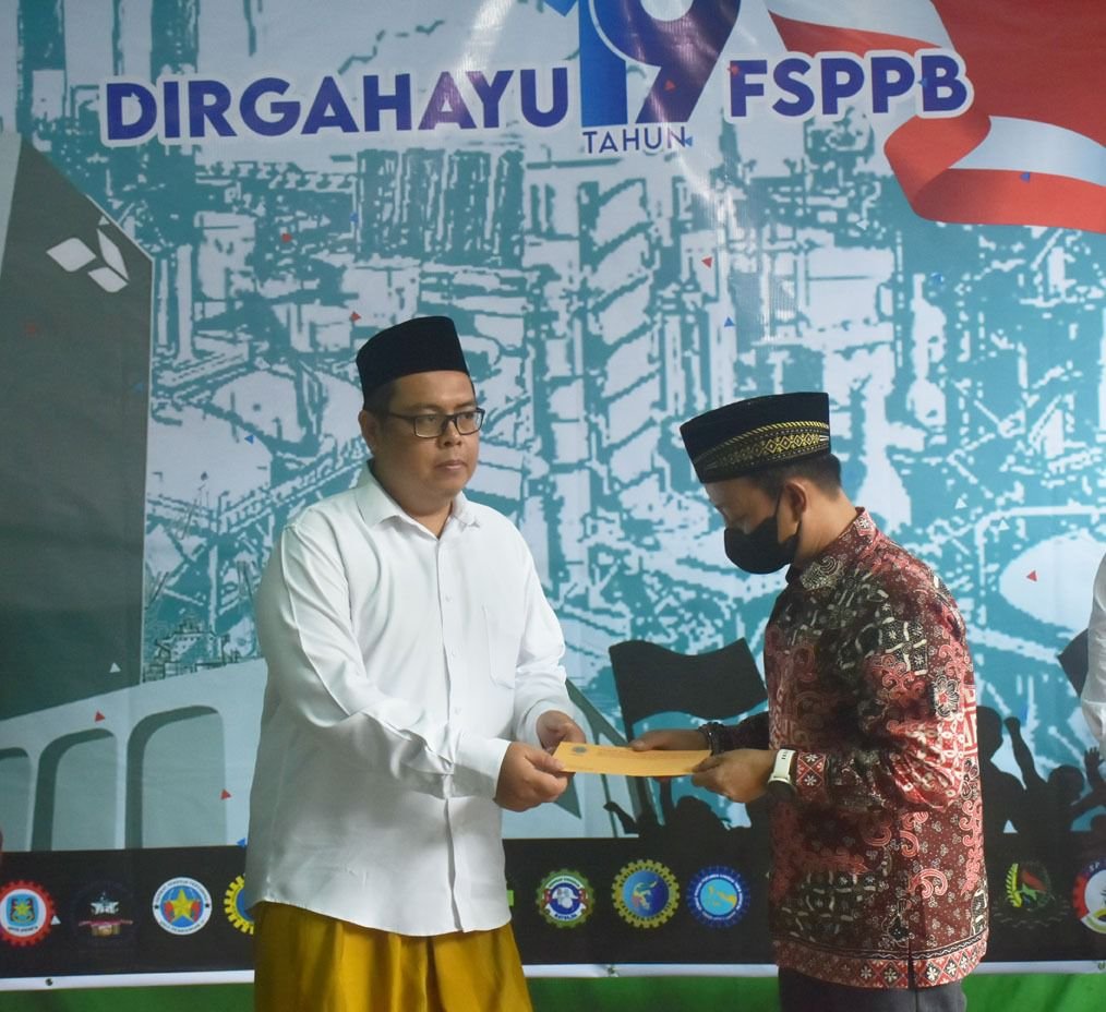 Acara HUT Ke-19 FSPPB ini juga diisi dengan acara syukuran yang digelar di kantor pusat PT Pertamina dan pemberian bantuan ke Pondok Pesantren Darul Muti’ah di wilayah Ciledug Tangerang Selatan. Bantuan dana dari insan pekerja FSPPB diterima langsung oleh pengasuh Pondok H. Abdus Syakur. (MM-01)