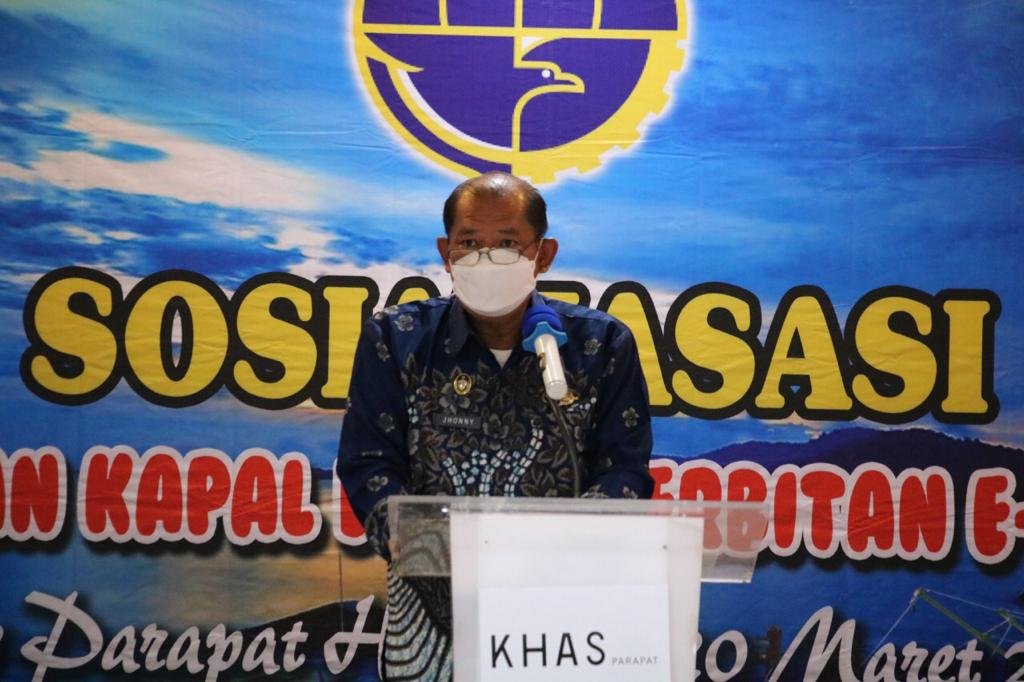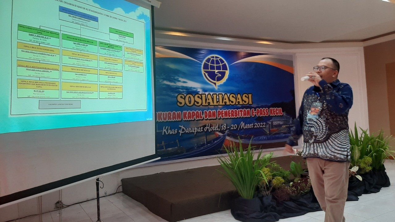 Capt.Jhonny Runggu Silalahi dalam sambutannya menyampaikan bahwa penyelenggaraan acara sosialisasi tersebut bertujuan untuk memberikan pemahaman terkait format baru Surat Tanda Kebangsaan Kapal (STKK) dan penerbitan pas kecil secara elektronik atau e-pass kecil.