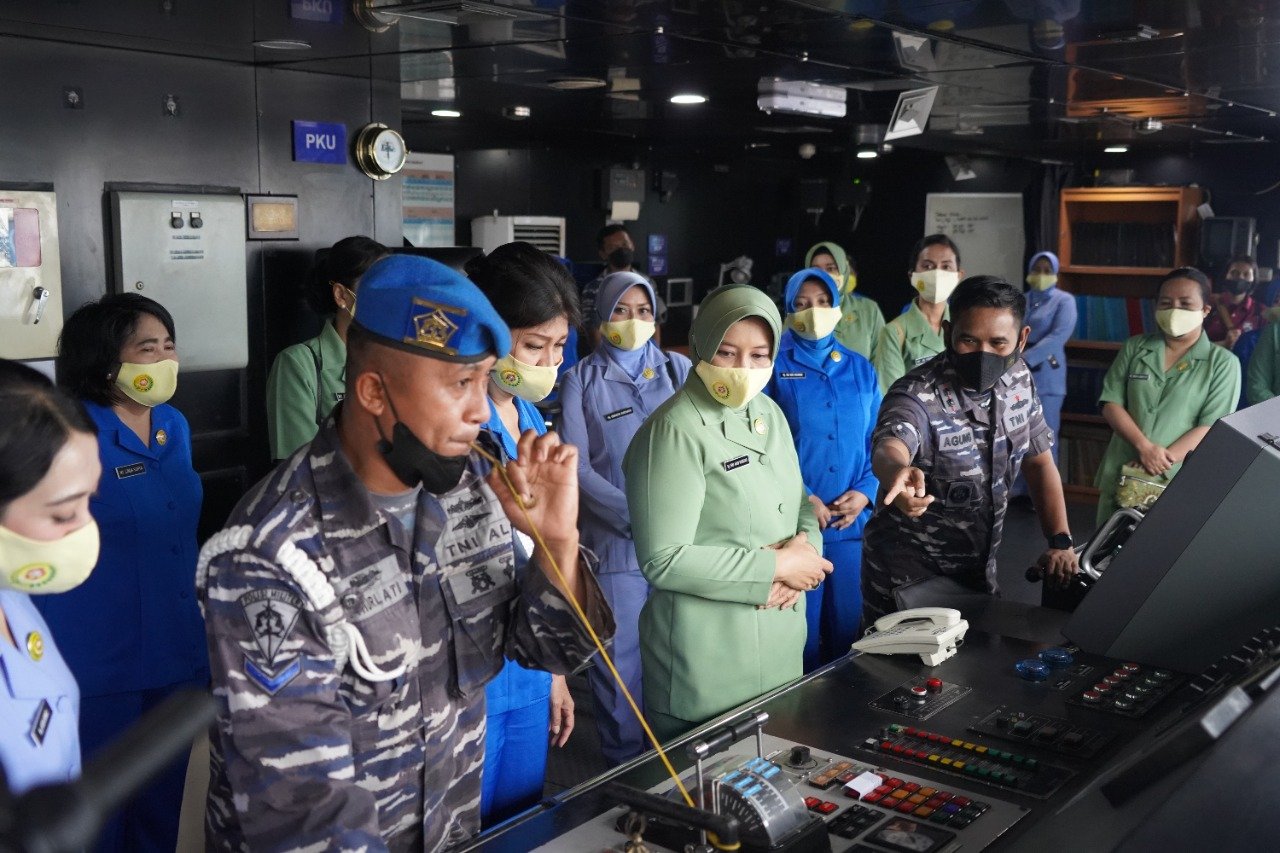 Ketua Dharma Pertiwi Daerah H Ny. Erni Teguh Muji Angkasa mengungkapkan kebanggaannya bisa melihat secara langsung salah satu alutsista TNI AL tersebut dan sekaligus memberikan support dan dukungan moril kepada seluruh prajurit yang saat itu sedang melaksanakan tugas operasi agar selalu tetap semangat mengemban tugas negara meskipun harus meninggalkan keluarganya masing-masing.