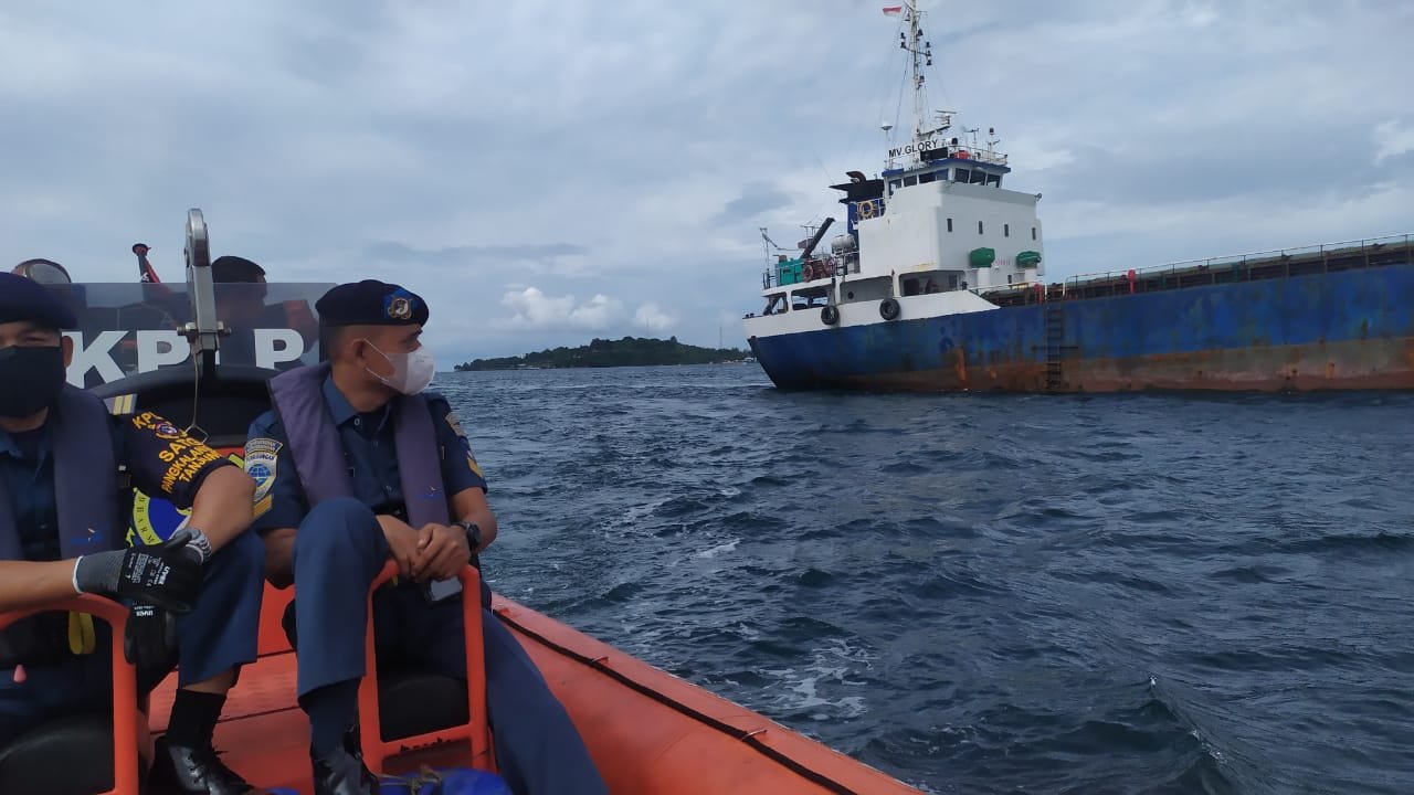 “Sekitar pukul 14.20 WIB kapal MV. GLORY lepas sendiri dari kandas, kapal langsung lego jangkar di sekitar lokasi kejadian dan tim Boarding Officer on board di kapal MV. GLORY untuk melaksanakan pemeriksaan dan pengecekan bersama ABK kapal tersebut pada bagian badan kapal dan kamar mesin, memastikan tidak adanya kebocoran akibat kapal kandas,” ungkapnya.