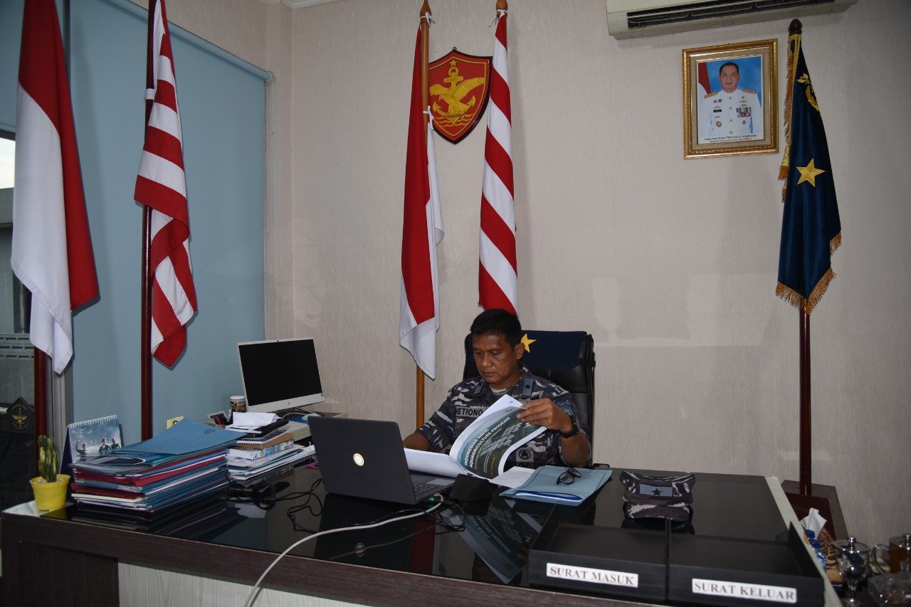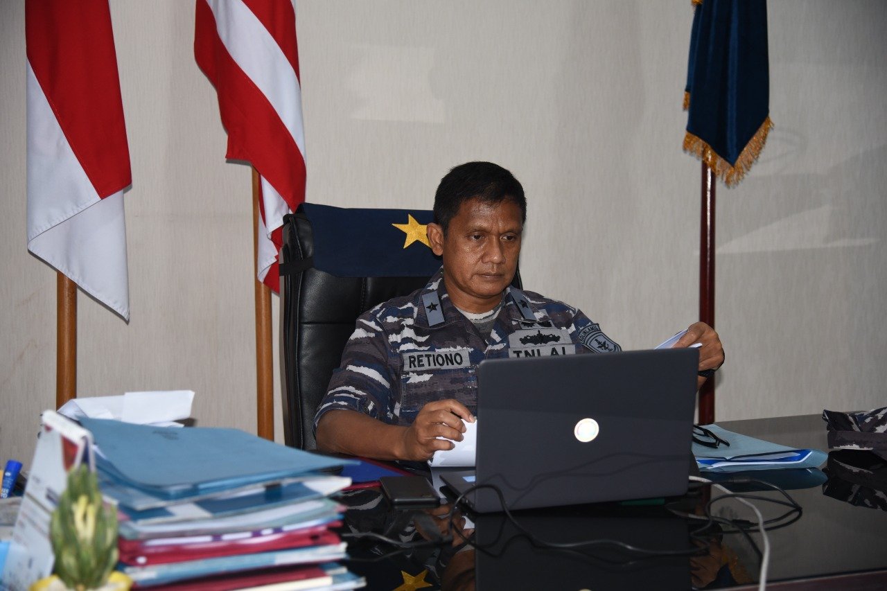 Kepala Staf Komando Lintas Laut Militer Laksma TNI Retiono Kunto mengikuti Rapat Koordinasi dan Rapat Kerja Teknis Potensi Maritim tahun 2022 yang berlangsung dari Kawasan Indonesian Naval Aquagriculture Program (INAP) Bali secara video conference dari ruang kerjanya, sedangkan Asisten Potensi Maritim Pangkolinlamil Kolonel Laut (P) Ketut Budiantara mengikuti kegiatan dengan hadir di lokasi acara atau secara tatap muka, Rabu (11/5/2022).