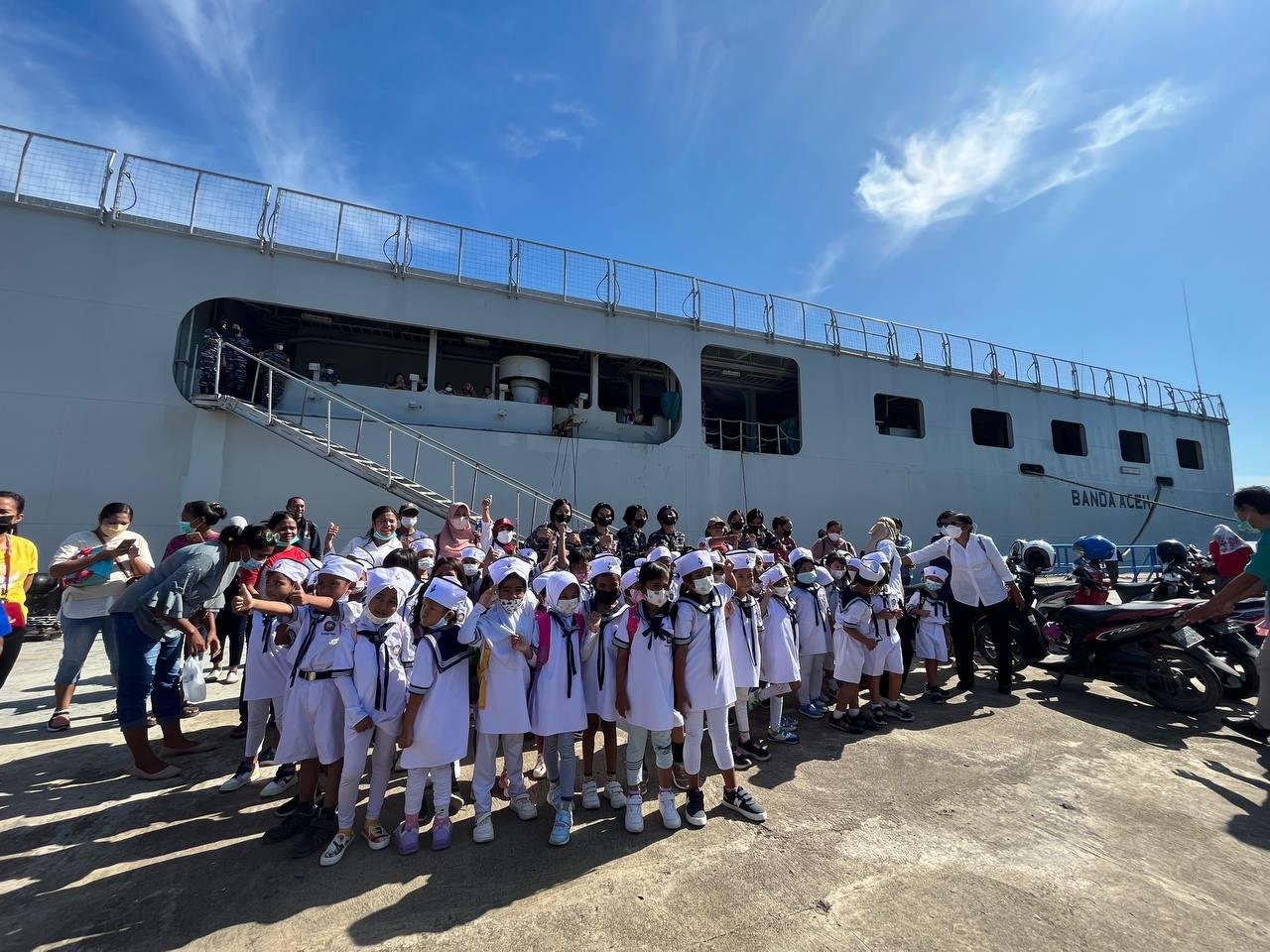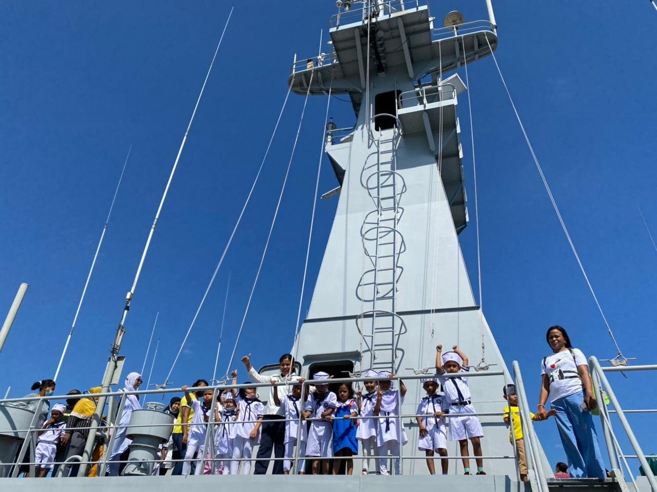 Dalam rangka memupuk jiwa bahari sejak dini sekaligus mengenalkan wawasan seputar kapal perang dan keangkatanlautan, KRI Banda Aceh-593 memberikan kesempatan kepada siswa siswi TK Hang Tuah 23 Kupang untuk melaksanakan study wisata di Kapal Perang Republik Indonesia yang saat ini tengah sandar di Dermaga Lantamal VII, Kupang, Nusa Tenggara Timur, Sabtu (21/5/2022).