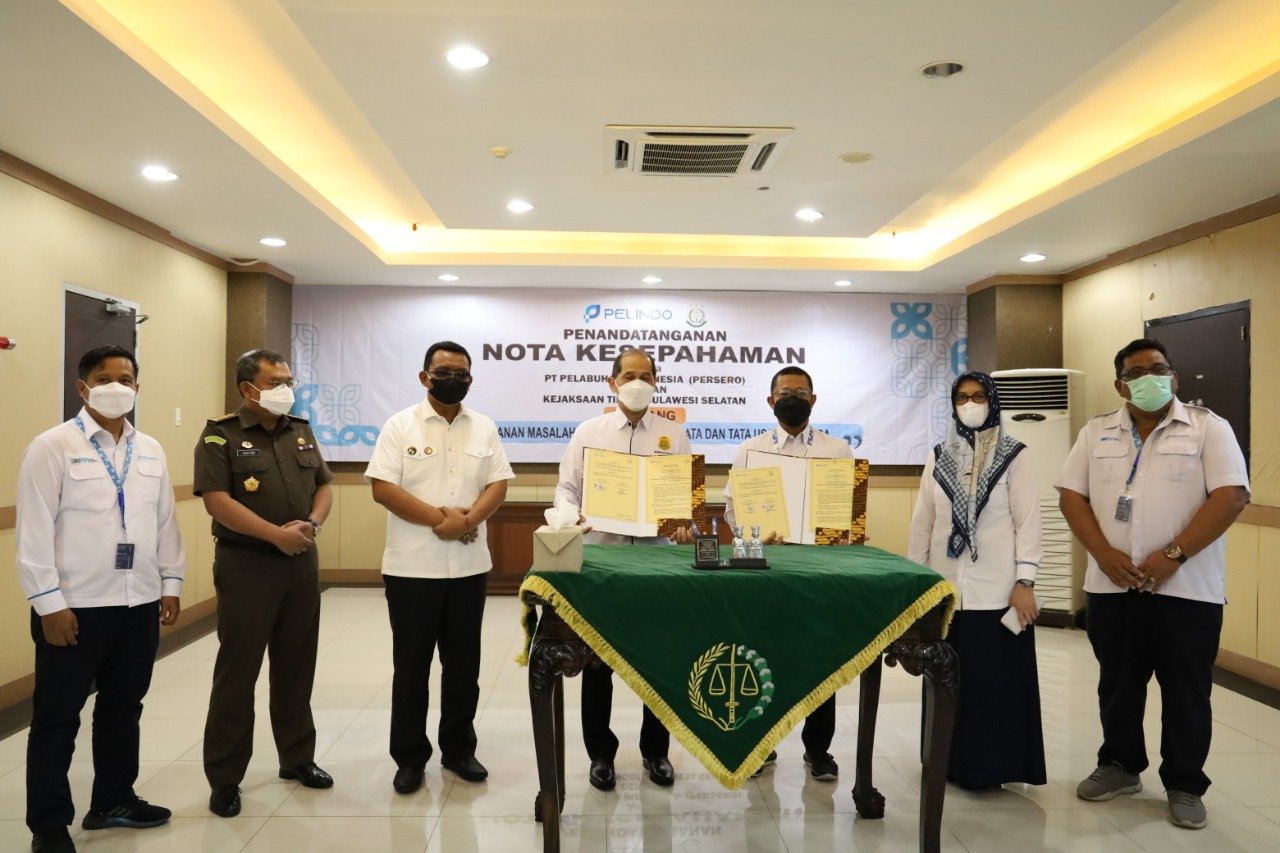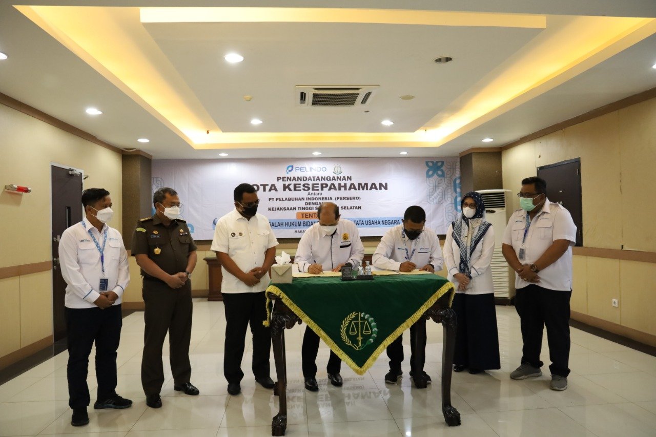 PT Pelabuhan Indonesia (Persero) Regional 4 bersama Kejaksaan Tinggi (Kajati) Sulawesi Selatan melakukan penandatanganan kesepakatan bersama atau Memorandum of Understanding (MoU) tentang Penanganan Masalah Hukum Bidang Perdata dan Tata Usaha Negara.