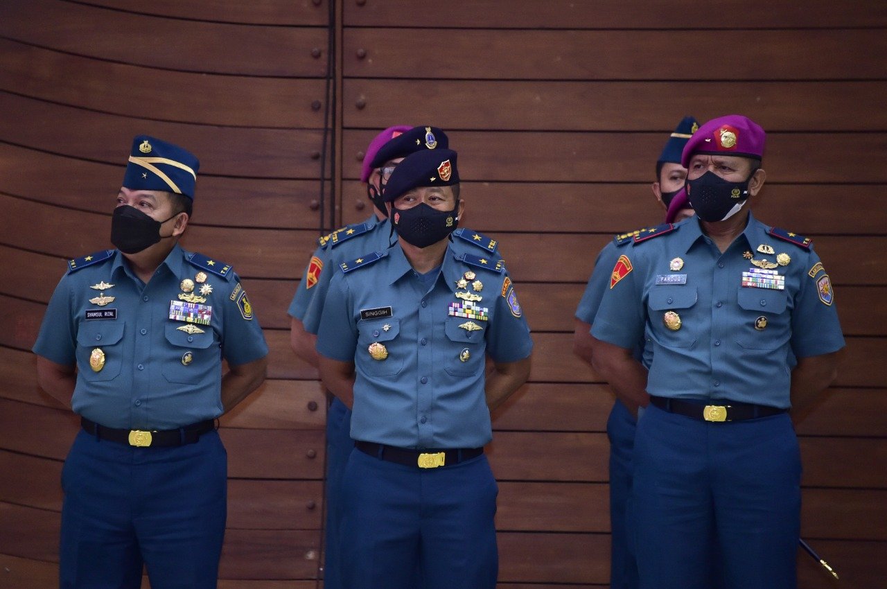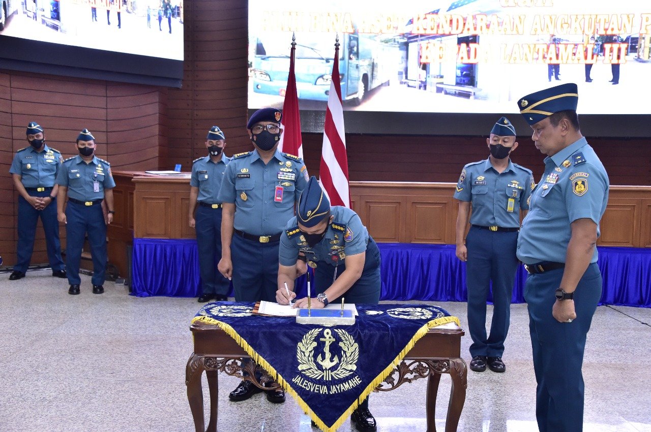 Kepala Staf Komando Lintas Laut Militer Laksma TNI Singgih Sugiarto mewakili Panglima Kolinlamil Laksda TNI Erwin S. Aldedharma menghadiri acara Penandatanganan Berita Acara Alih Bina Aset Stasiun Pengisian Bahan Bakar TNI (SPBT) Terpadu dan Aset Angkutan Personil (lyn) yang dipimpin oleh Wakil Asisten Logistik Kasal Laksma TNI Budi Sulistyo di Auditorium Denma Mabesal, Cilangkap, Jakarta Timur, Rabu (29/6/2022).
