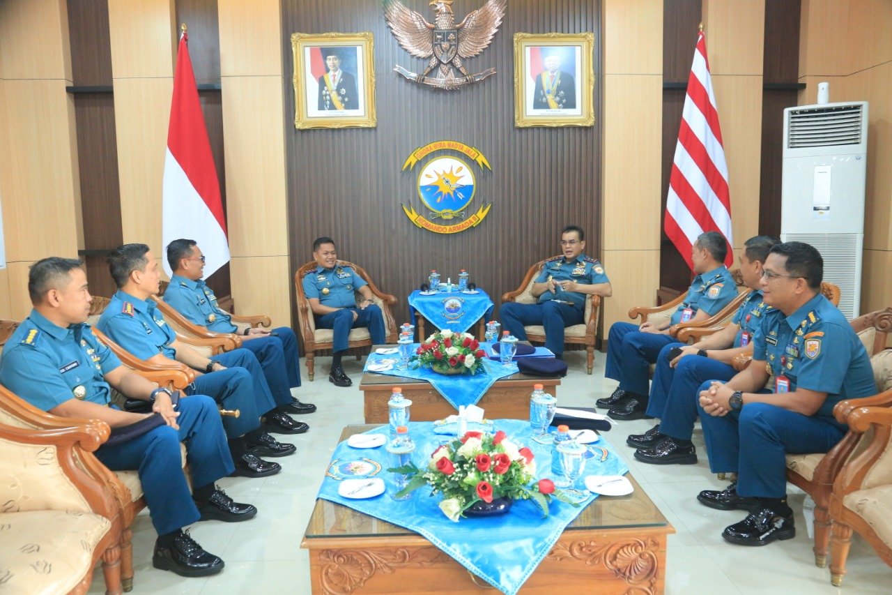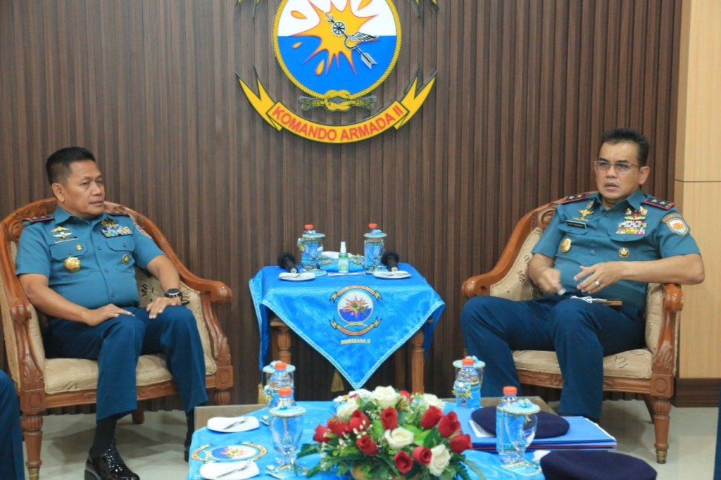Disambut dengan penuh keakraban, Panglima Kolinlamil diterima oleh Panglima Koarmada II di Ruang VIP Gedung Nala Koarmada II, Ujung Surabaya, Rabu (20/7/2022). Kunjungan kerja Pangkolinlamil tersebut sebagai bentuk silaturahmi dan perkenalan diri sebagai pejabat Pangkolinlamil yang baru sekaligus koordinasi kerjasama terkait berbagai kegiatan dan latihan yang akan dan sedang dilaksanakan oleh Kolinlamil maupun Koarmada II. Dalam kesempatan tersebut Pangkolinlamil didampingi Aslog Pangkolinlamil, Kadisharkap Kolinlamil dan Dansatlinlamil 2.