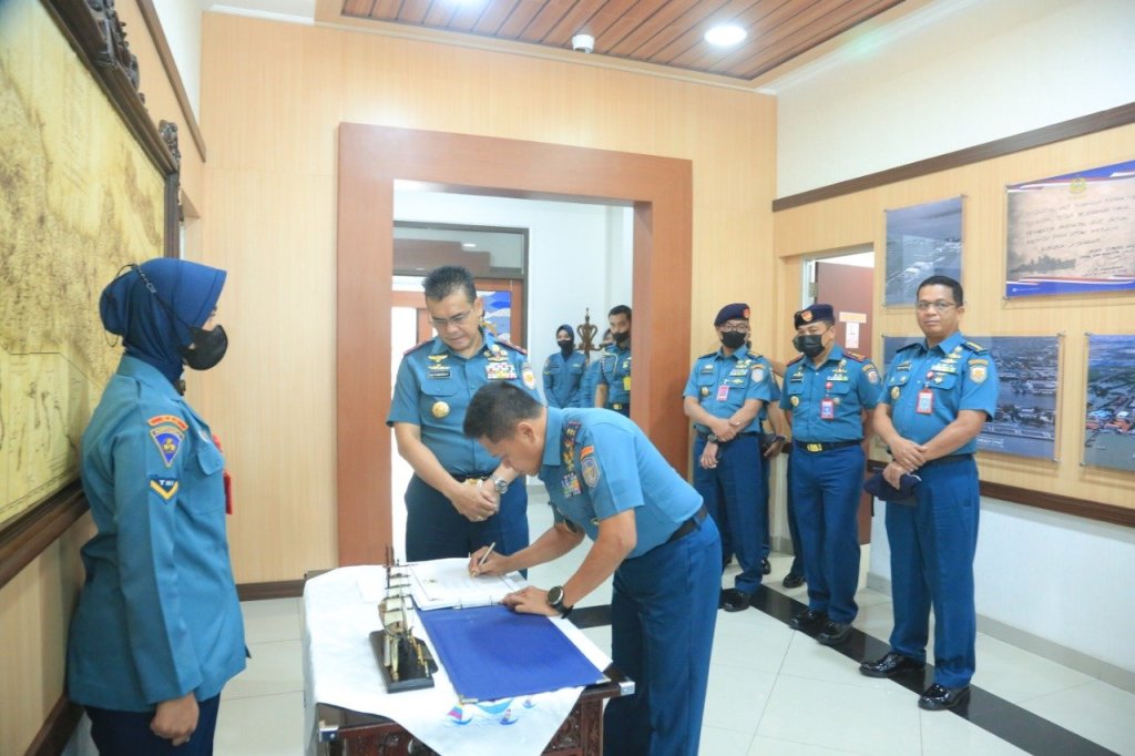 Panglima Kolinlamil Laksda TNI Agus Hariadi melanjutkan lawatannya ke Mako Koarmada II dalam rangka courtesy call kepada Panglima Koarmada II Laksda TNI Dr. T. S. N. B. Hutabarat.