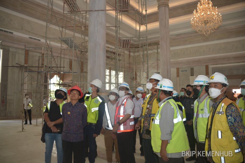 Usai dari Pelabuhan Sanur, Menhub meninjau progres revitalisasi Terminal VVIP Bandara I Gusti Ngurah Rai. Menhub terpukau dengan desain bangunan yang modern, simple, dan unik.