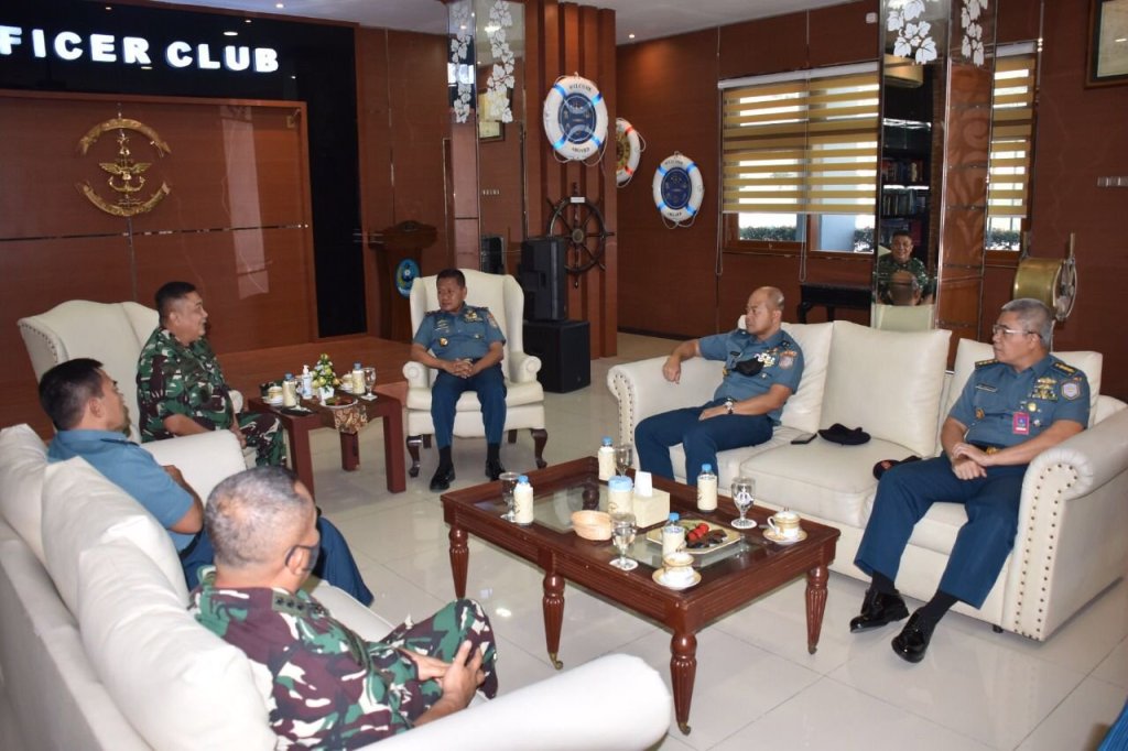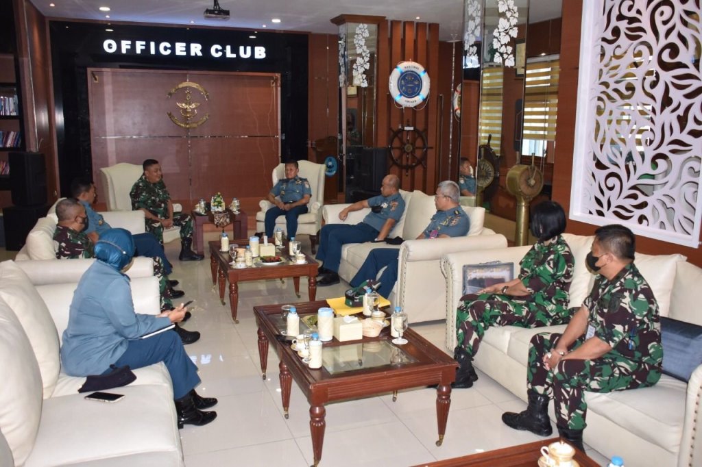 Panglima Komando Lintas Laut Militer Laksda TNI Agus Hariadi menerima kedatangan Tim Penilai Bulan Trisila TNI AL yang dipimpin oleh Brigjen TNI Mar Suprapto Adi di Ruang Tamu Panglima, Mako Kolinlamil, Tanjung Priok, Jakarta Utara, Rabu (10/8/2022).