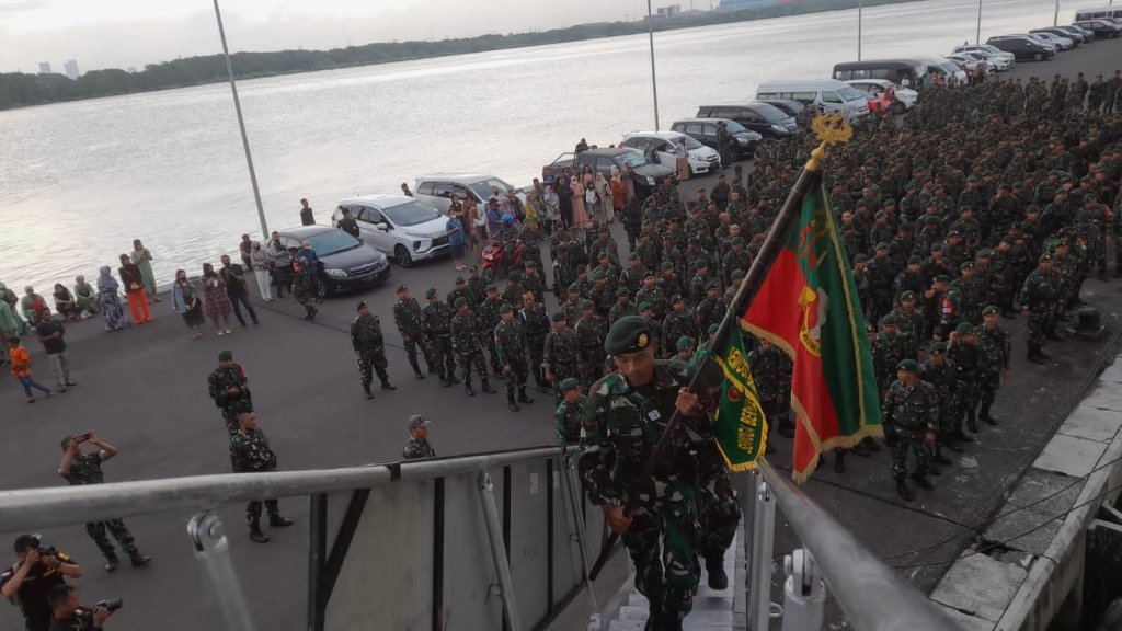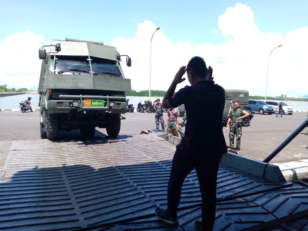 Mengemban misi operasi dukungan angkutan laut militer pergeseran pasukan dan materiil Satuan Tugas Satuan Organik Provinsi Papua tahun 2022, KRI Tanjung Kambani-971 yang saat ini sandar di Dermaga Madura Komando Armada II melaksanakan embarkasi pasukan dan materiil pasukan Batalyon Infanteri Raider 514/ Sabbada Yudha, Senin (15/8/2022).