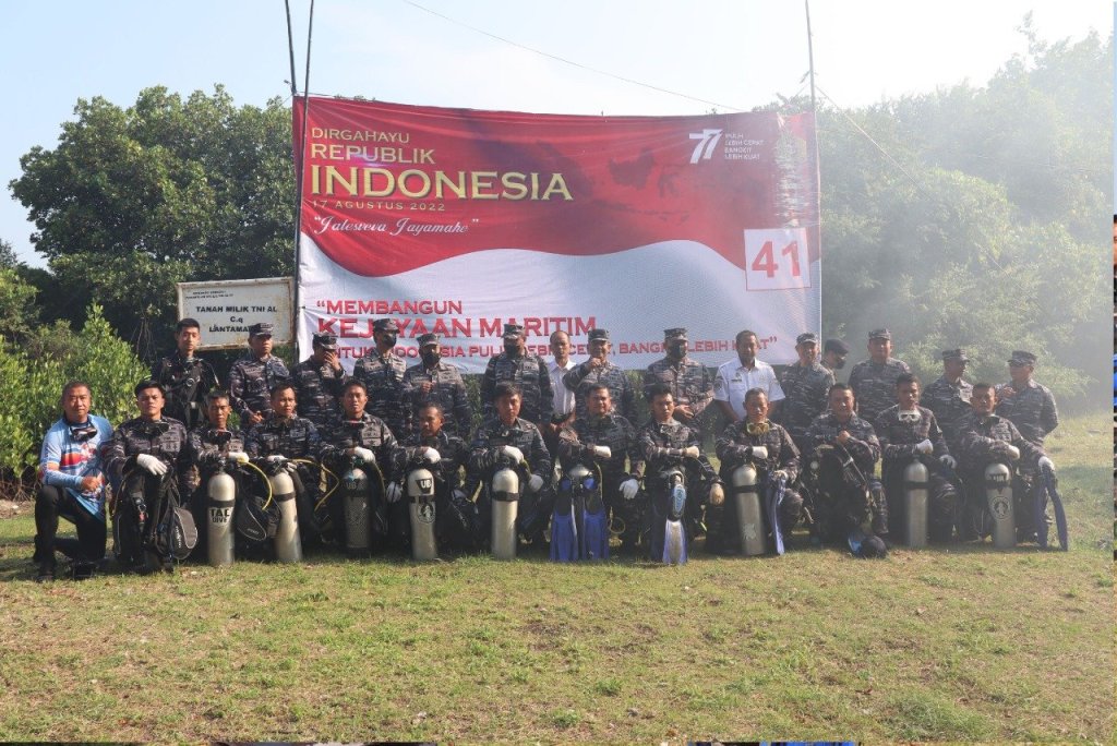 Pengibaran bendera Merah Putih di dasar laut perairan Pulau Damar tersebut dilaksanakan oleh 16 penyelam dari Pushidrosal yang dipimpin oleh Kadisgeomar Pushidrosal Kolonel Laut (KH) Muddan Zayadi, S.Si.
